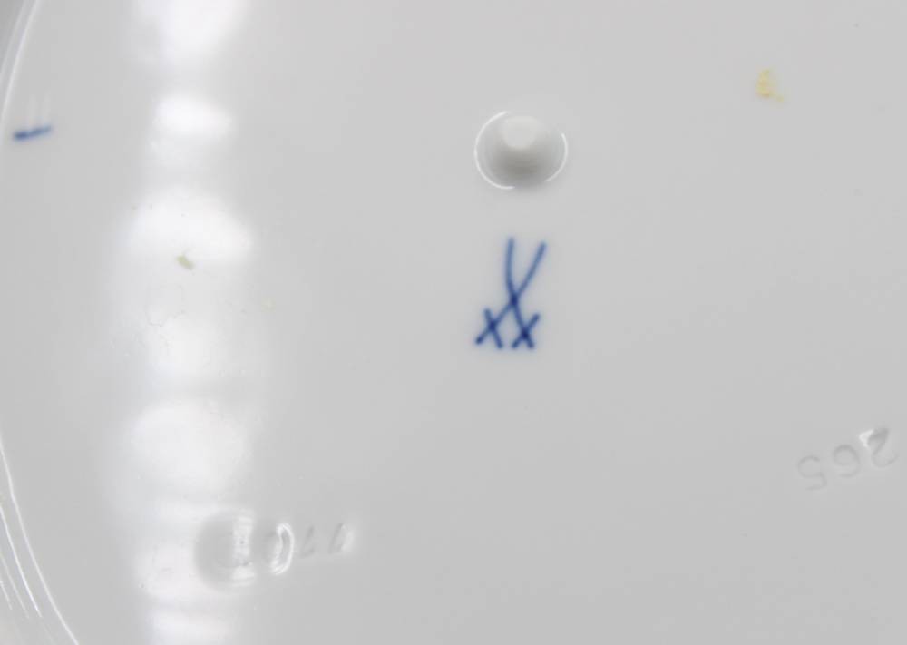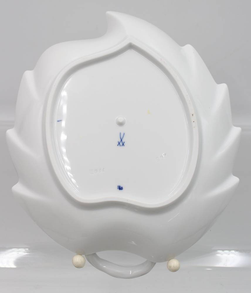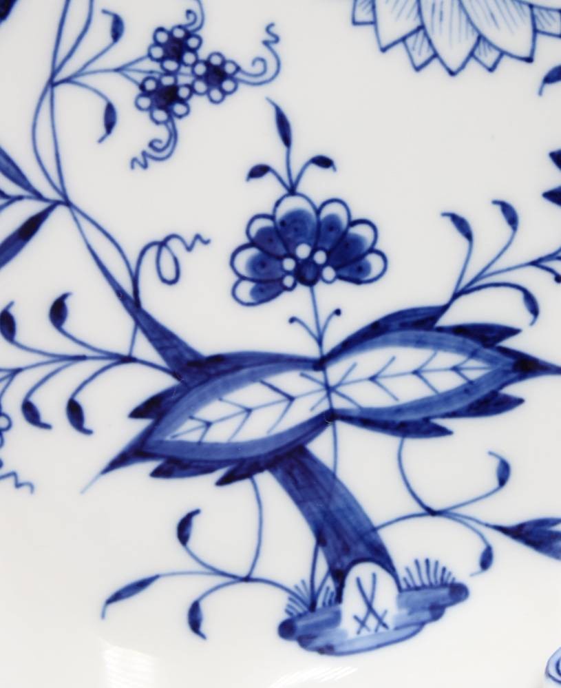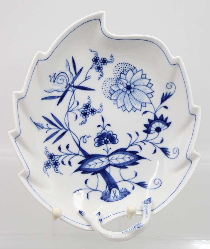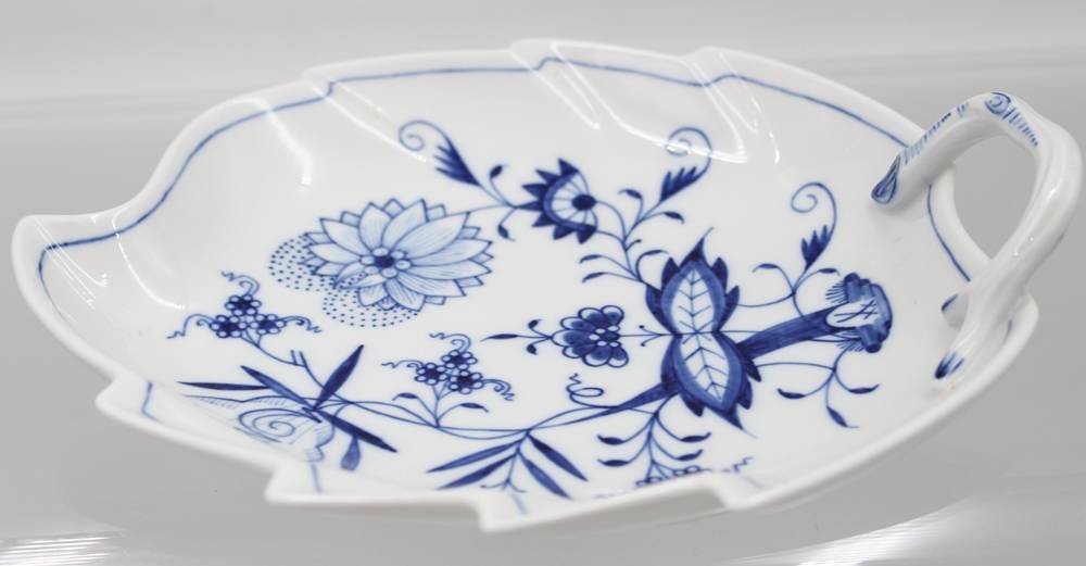 gr. Blattschale, Meissen, Zwiebelmuster, 2 Schleifstriche, H-5,5cm B-22cm [1]