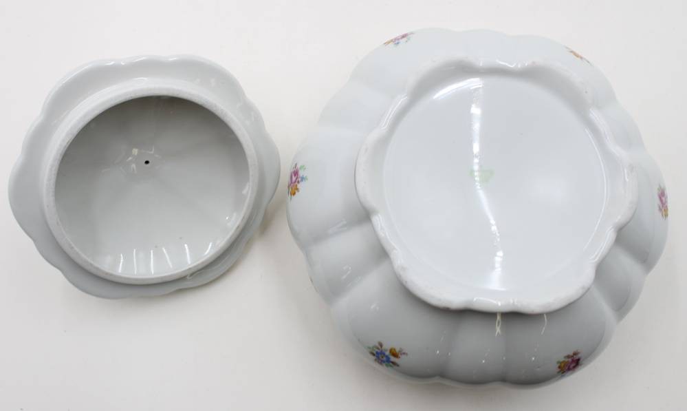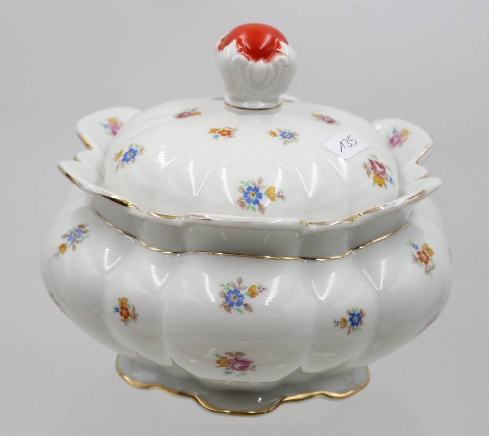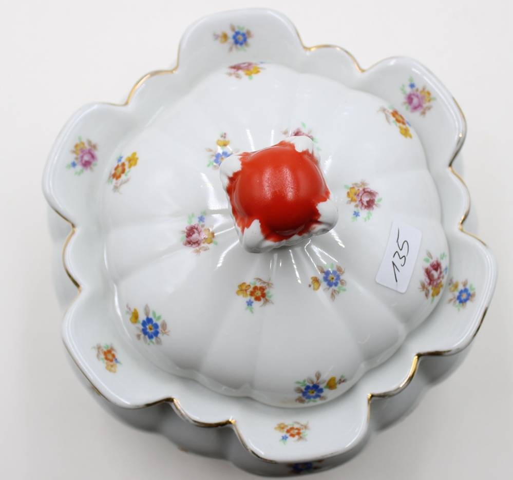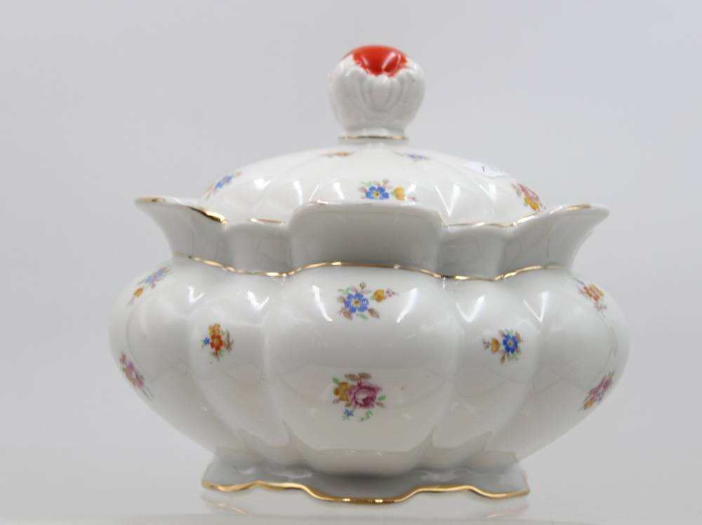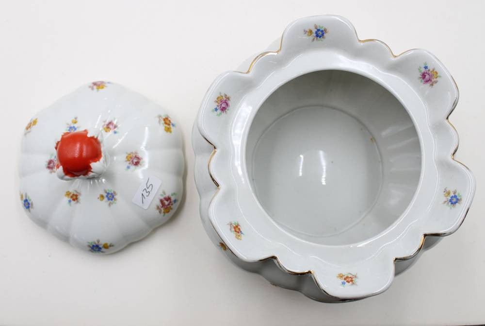gr. Deckeldose, Streublümchen, Kronenmarke, wohl um 1930, H-16cm D-20cm [1]