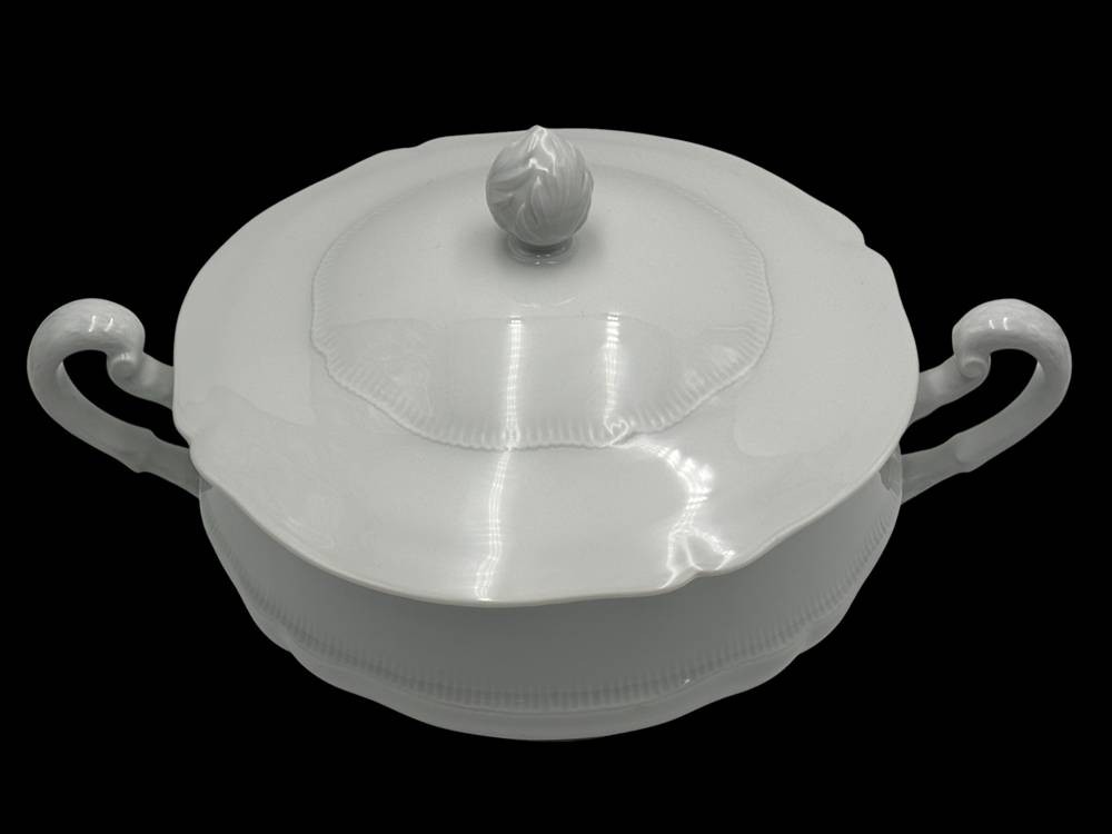 gr. Deckelschale "Haviland" Limoges, France, weiss mit Reliefdekor, H-ca. 20 cm, B-34 cm [1]