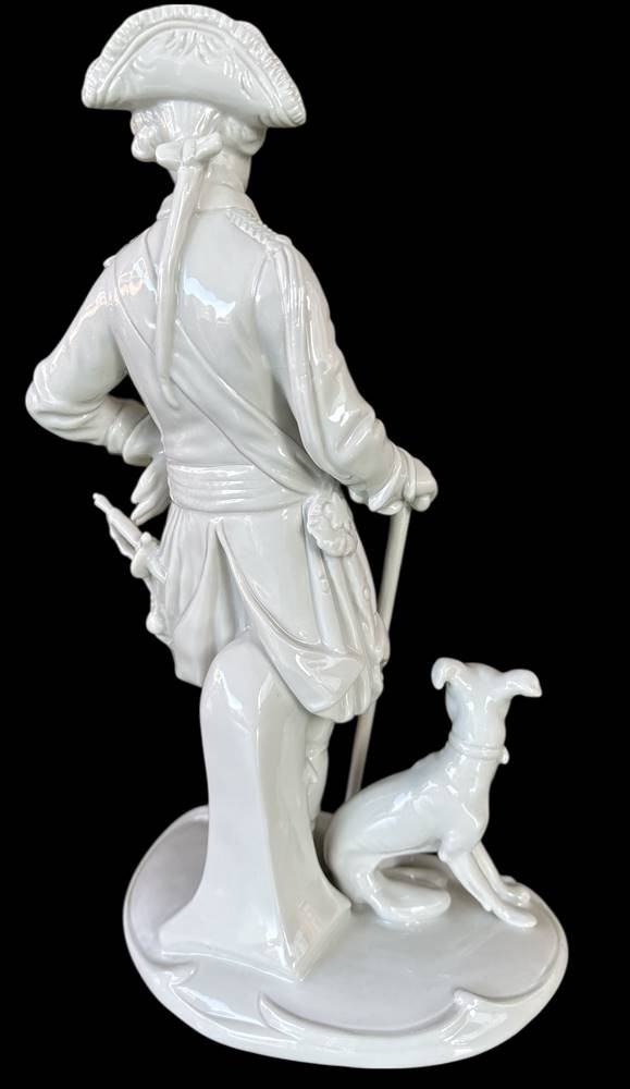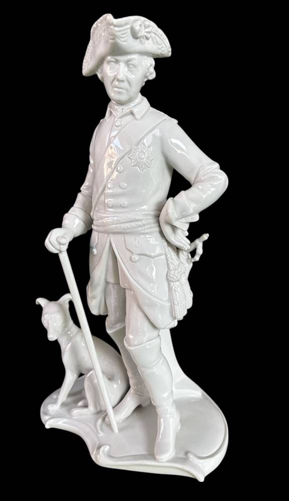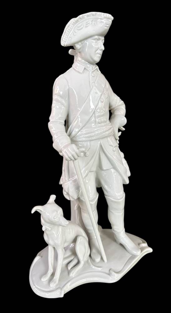 gr. Figur -Der alte Fritz mit Windhund ,Kämmerer-Volkstedt, weiss, H-28 cm [1]