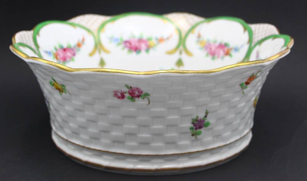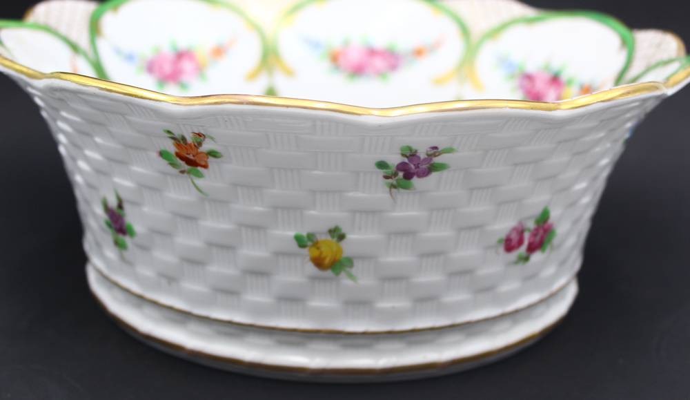 gr. Flechtkorb "Sevres" mit Rosenbemalung, H-10 cm, D-25 cm