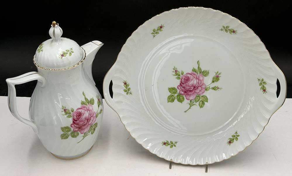 gr. Kaffeekanne, H-24 cm, und Kuchenteller , D-27 cm "Royal Tettau" Rosendekor