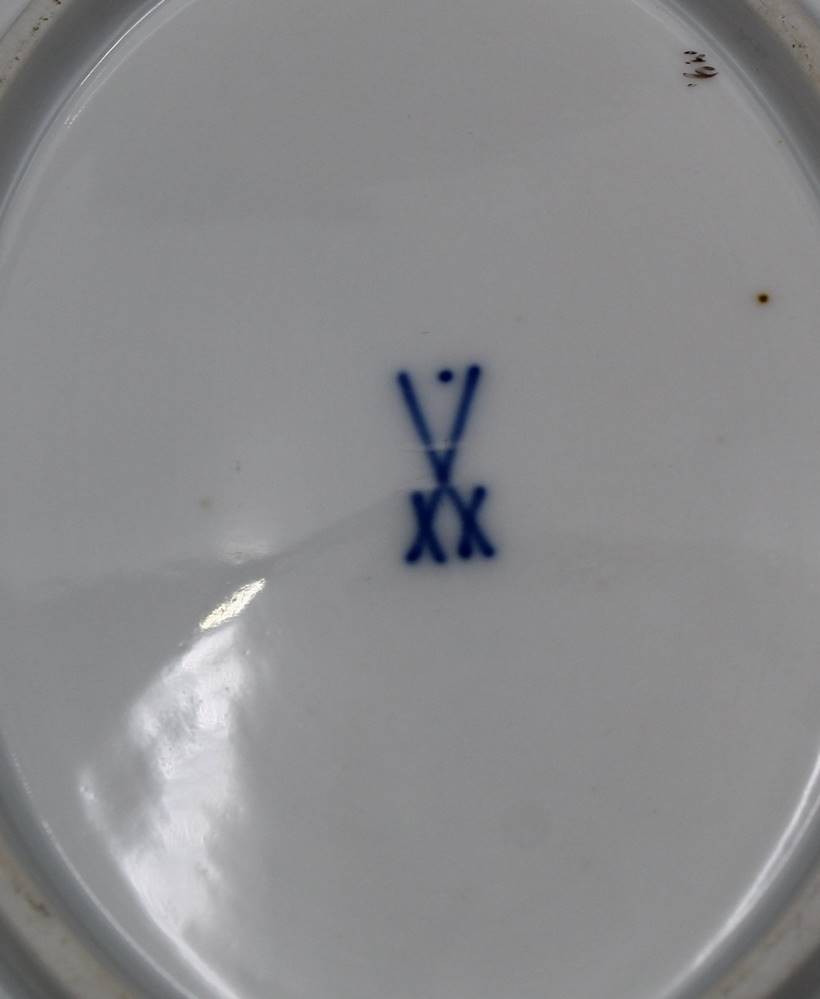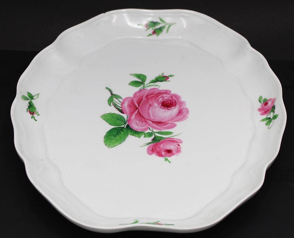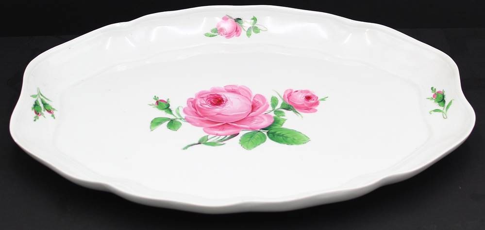 gr. ovale Platte "Meissen" rote Rose, 2.Wahl, Rand mit kleinen Chip, 37x27 cm [1]