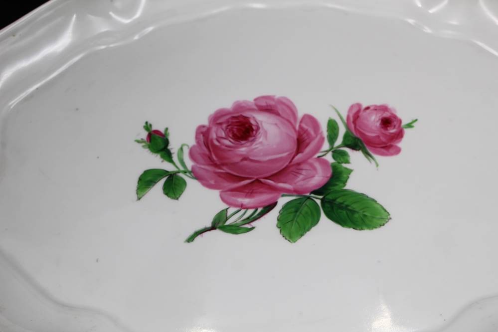 gr. ovale Platte "Meissen" rote Rose, 2.Wahl, Rand mit kleinen Chip, 37x27 cm