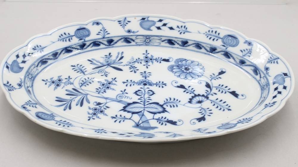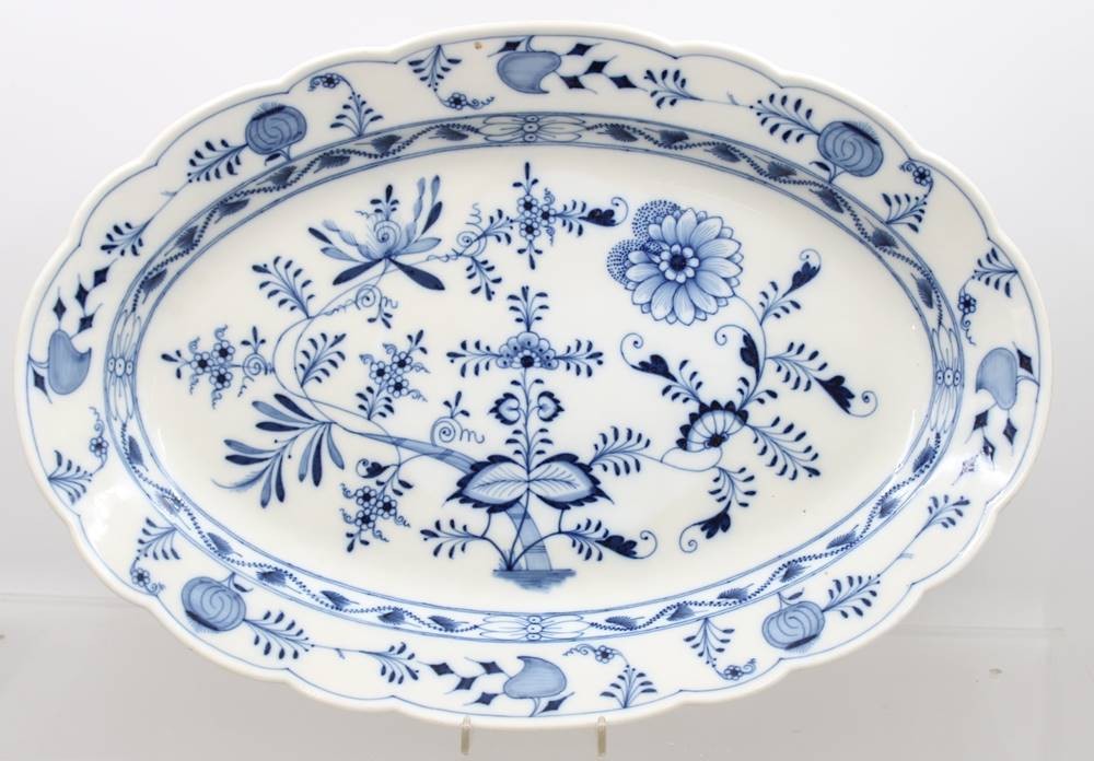 gr. ovale Platte, Stadt Meissen, Zwiebelmuster, 48 x 32,5cm [1]