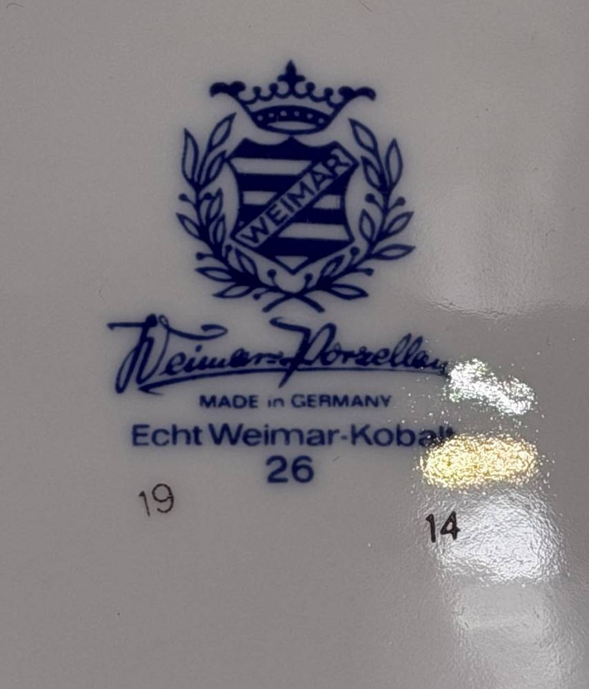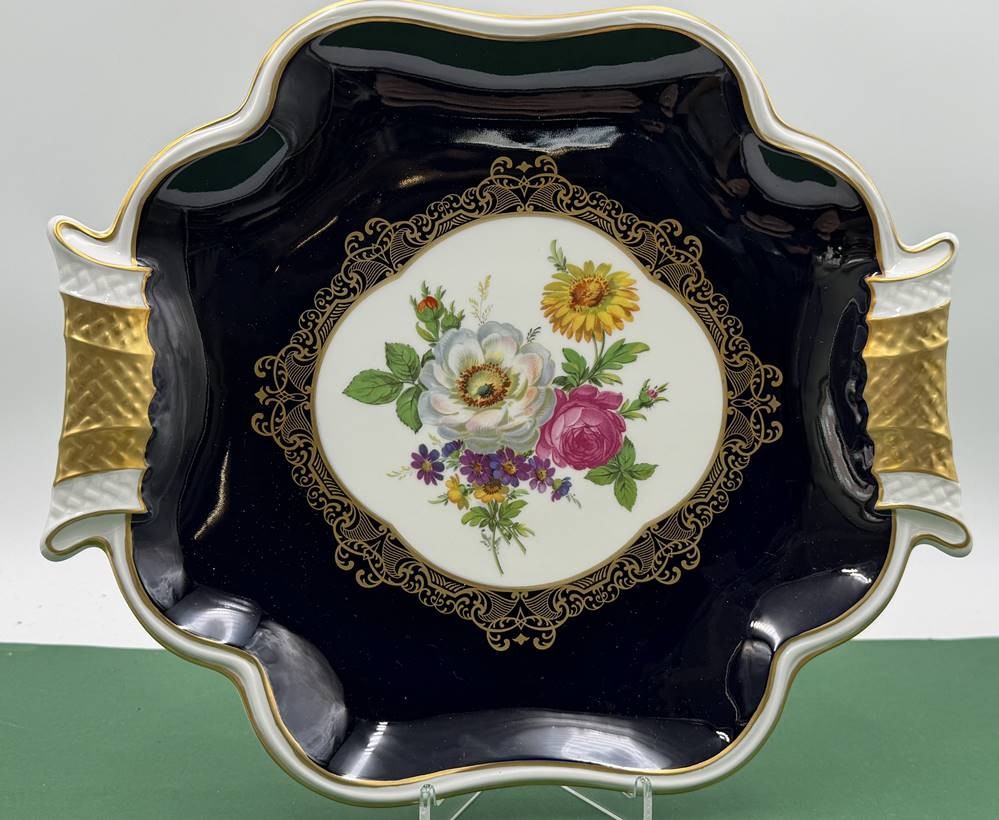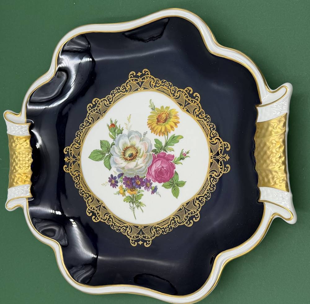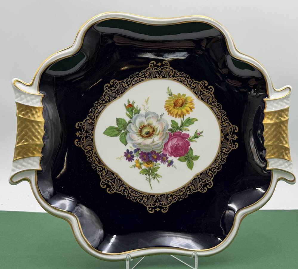 gr. Prunkplatte "Weimar" Kobalt mit Gold und Blumen, 33x29 cm, Handarbeit [1]