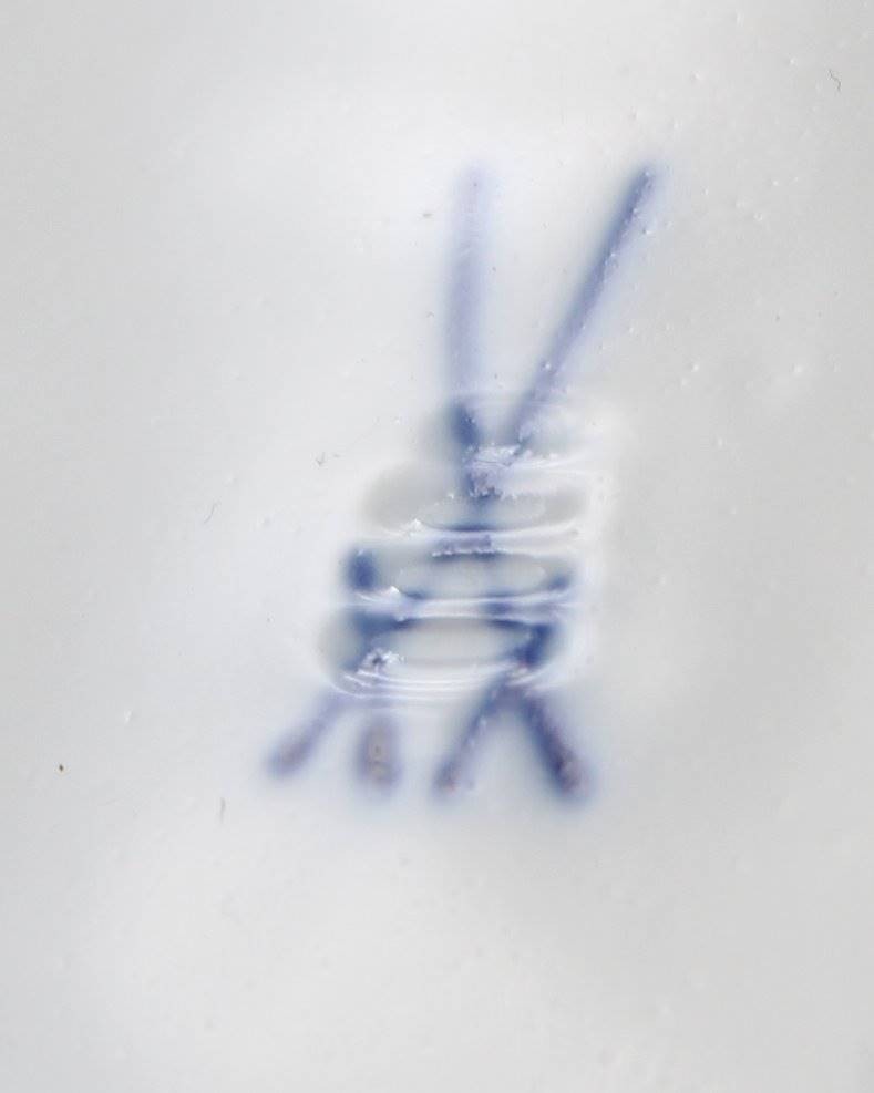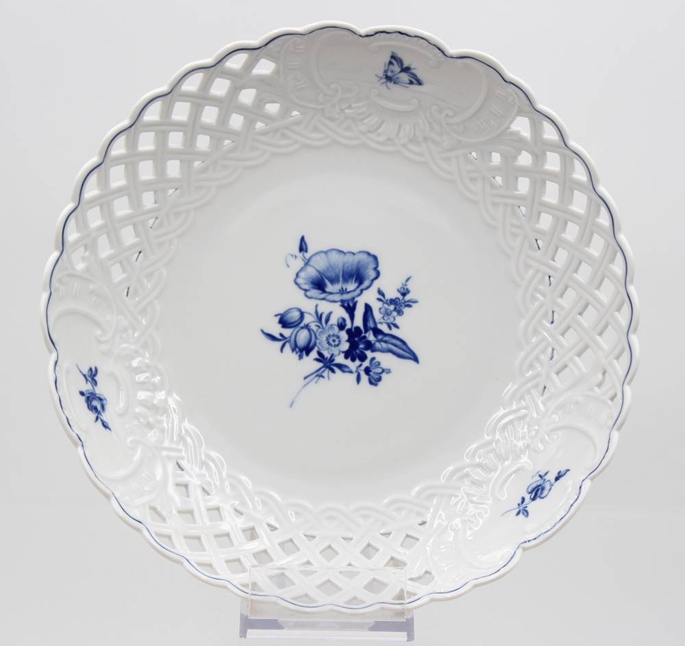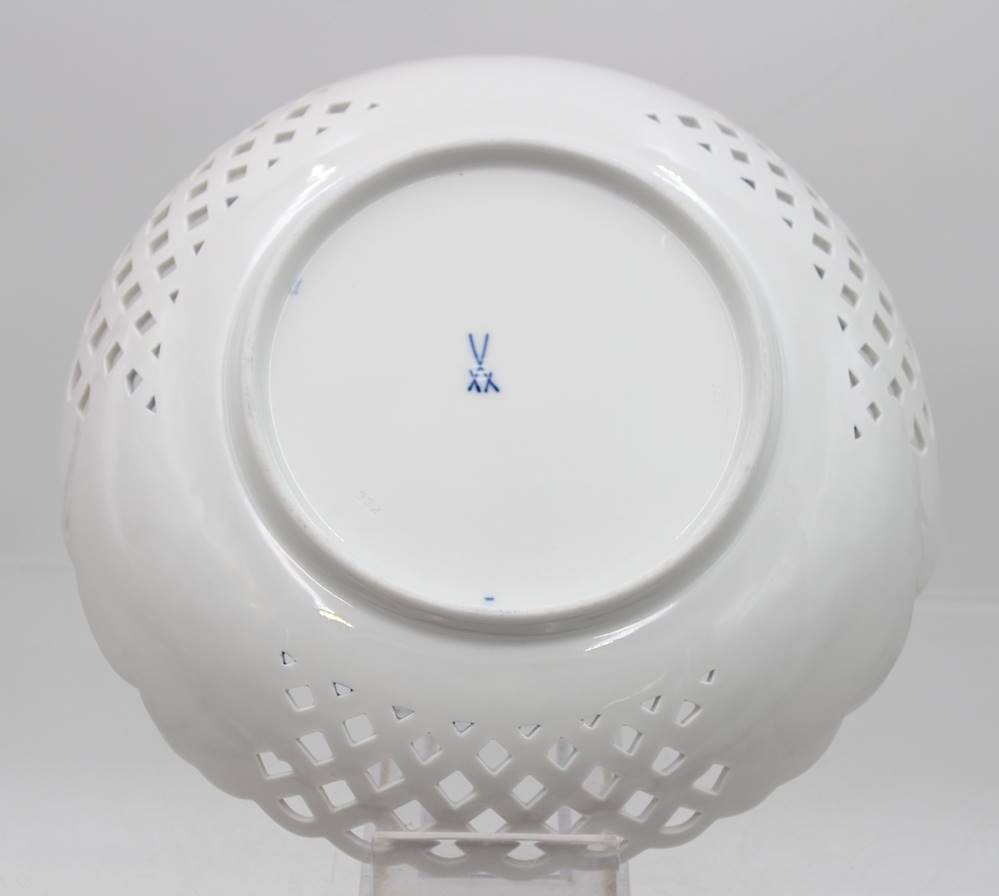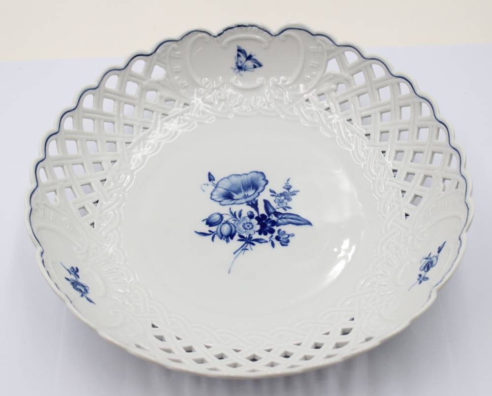 gr. runde Durchbruchschale, Meissen, Schwertermarke, blaue Blume, 4 Schleifstriche, ca. H-5,5cm D-24,5cm [1]