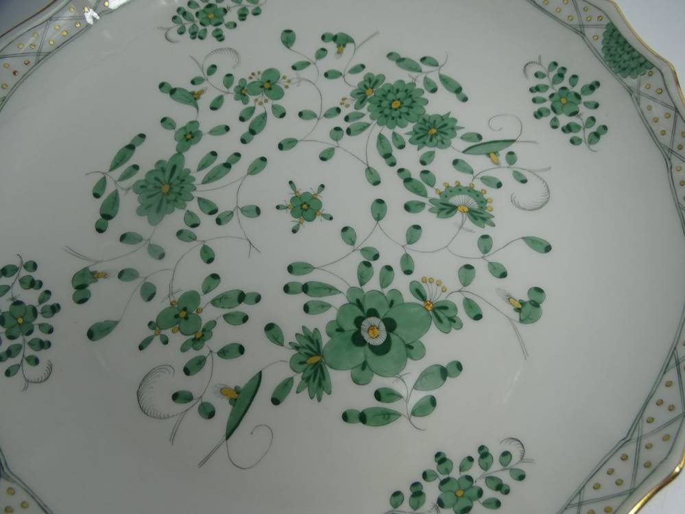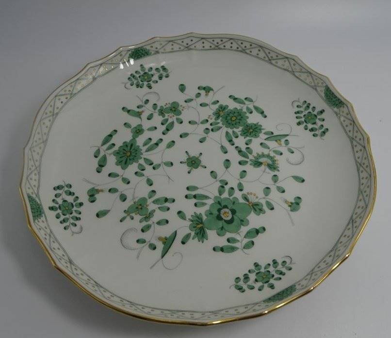 gr. runder Kuchenteller "Meissen" indische B lumen, grün mit Gold, D-27,5 cm, 1.Wahl