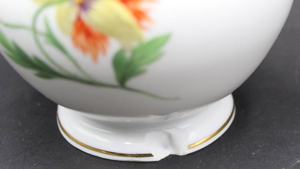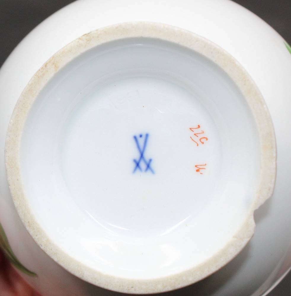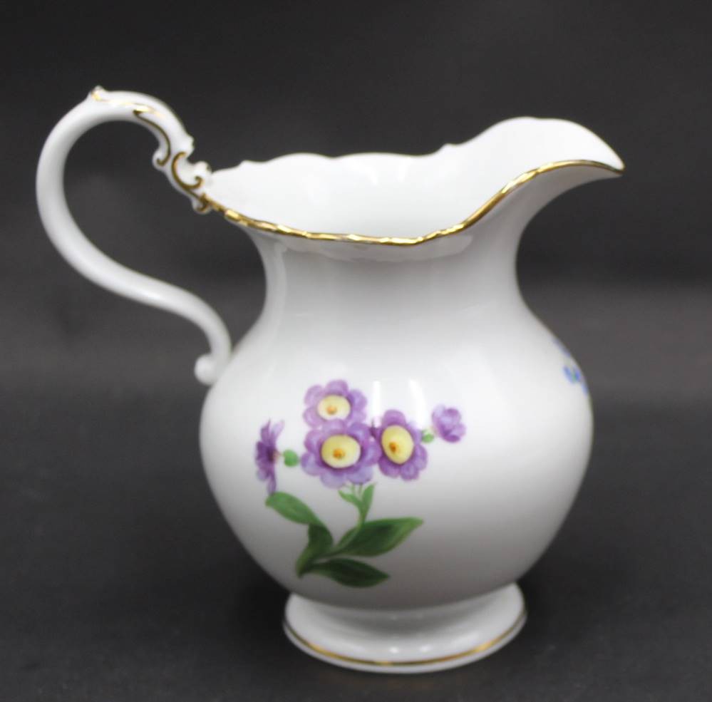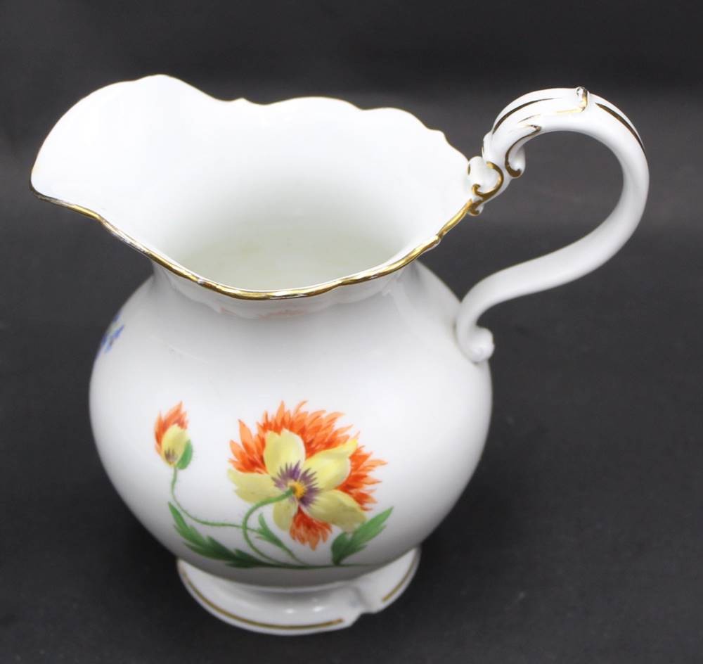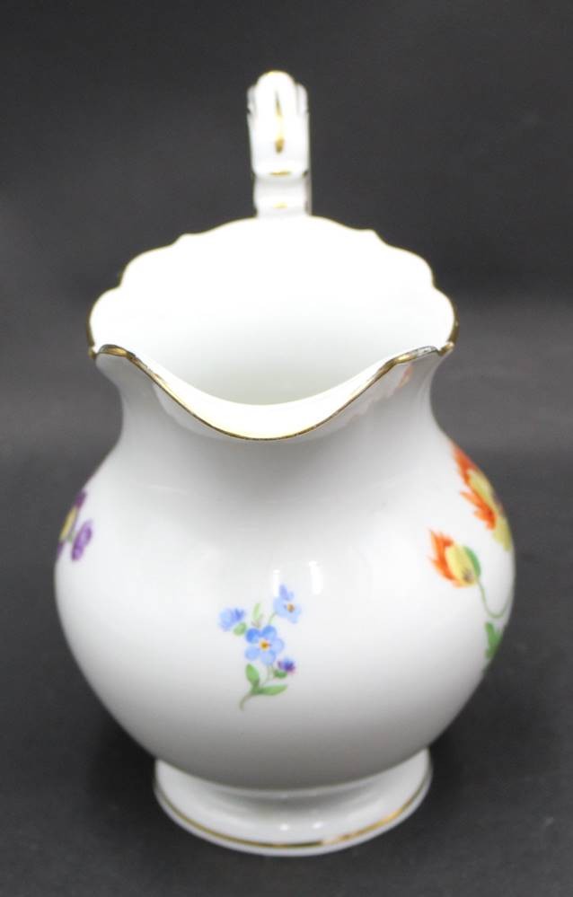 gr. Sahnekännchen "Meissen" Blumenmalerei, 1.Wahl, H-15 cm, Stand mit Chip [1]