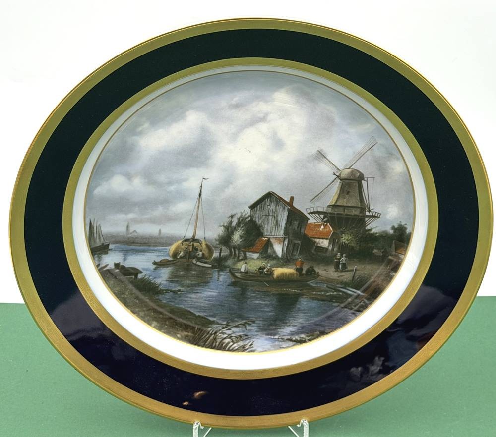 gr. Schale "Kaiser" holländ. Flusslandschaft", kobaltrand, D-33 cm