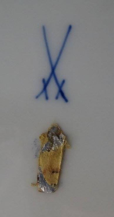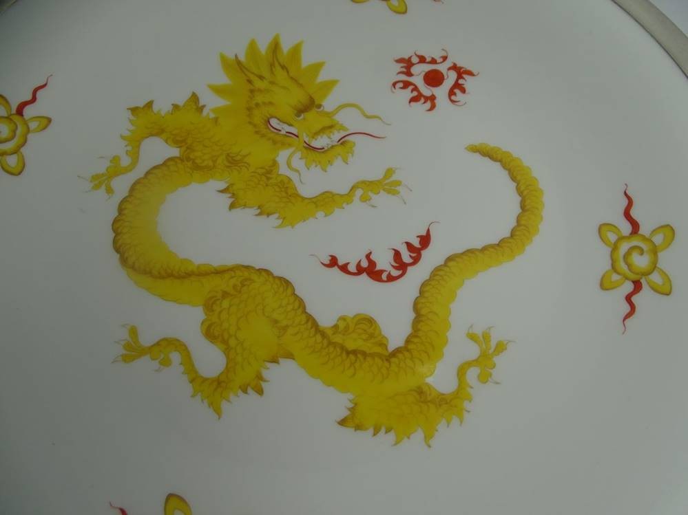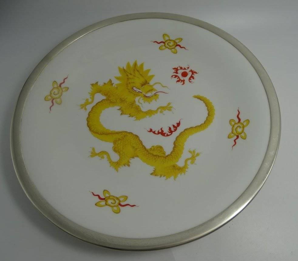 gr. Schale (Wandteller) "Meissen" 1.Wahl, gelber Drache mit Silberrand, D-35 cm [1]