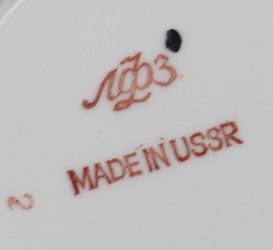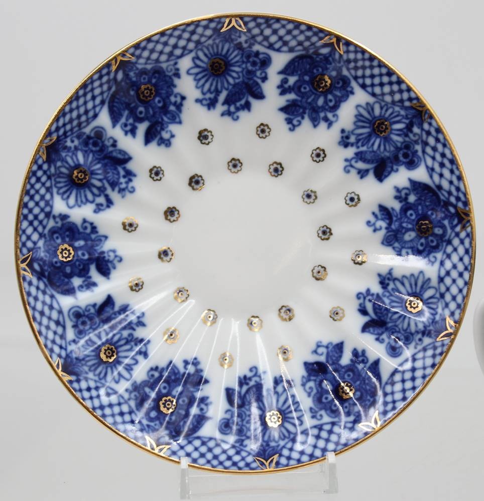 gr. Tasse und Untertasse, Lomonossow, Kobaltdekor mit Gold, je unterschiedliche Dekore, Tasse H-8cm Teller D-14,5cm [1]