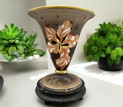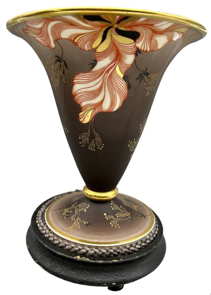 gr. Trichtervase "Rosenthal" um 1925, handbemalt, mit alten Holzsockel, H- zus.H-25 cm, D-19 cm, Vase gut erhalten [1]