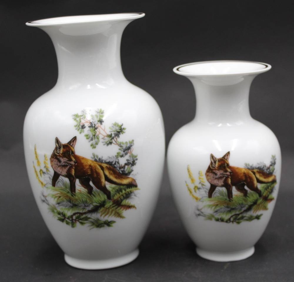 gr. und kleine Vase "MPM" Saxonia, Fuchsdekor, H-18 und 15 cm [1]