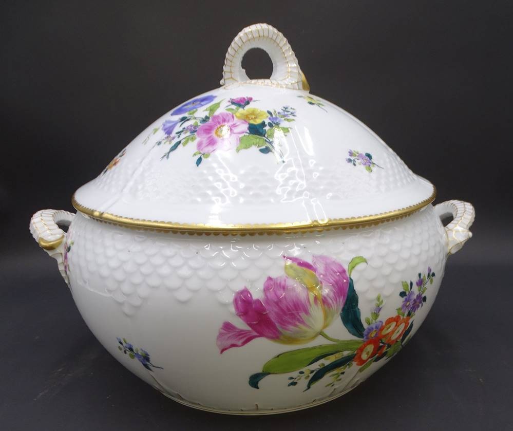 grosse Deckelterinne mit Blumenmalerei "Bing&Gröndahl" Denmark, gut erhalten, H-22 cm, D-26 cm [1]