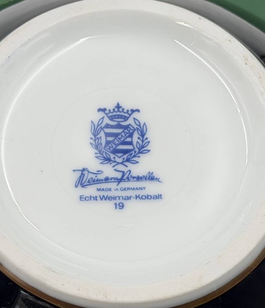 grosse Deckelvase "Weimar" Kobalt mit Gold und Blumen, H-38 cm