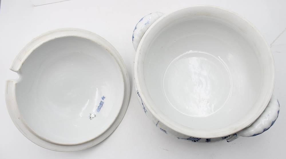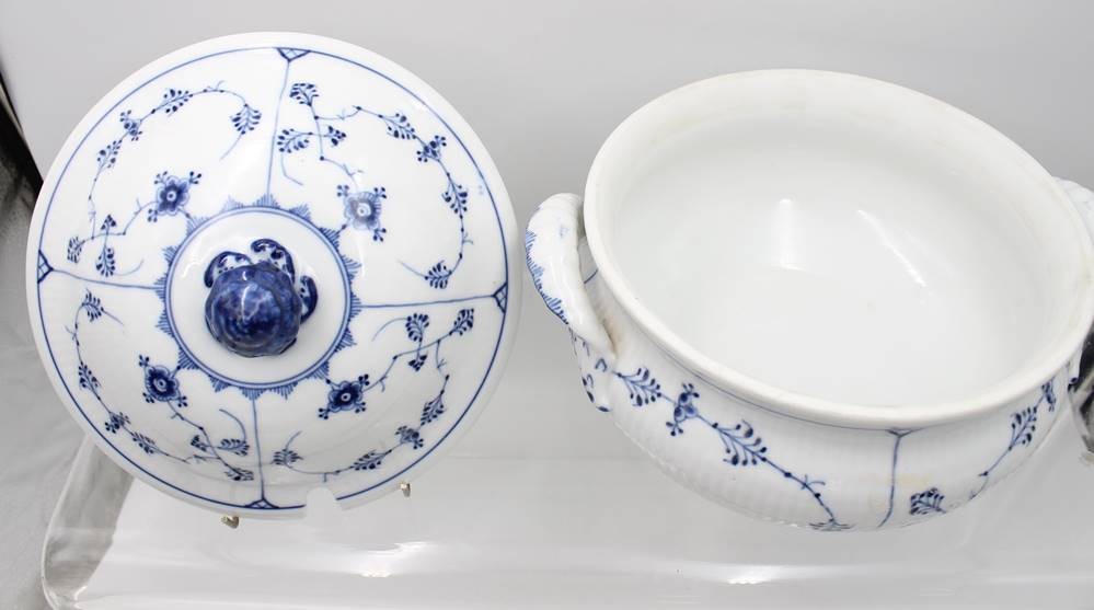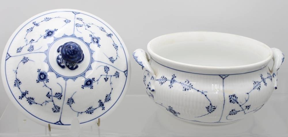 grosse Terrine mit gr. Unterteller "Royal Copenhagen" Muselmalet, Mod. Mr. 223, H-ca. 25 cm, mit Unterteller, Mod. Nr. 226, D-ca. 40 cm [1]