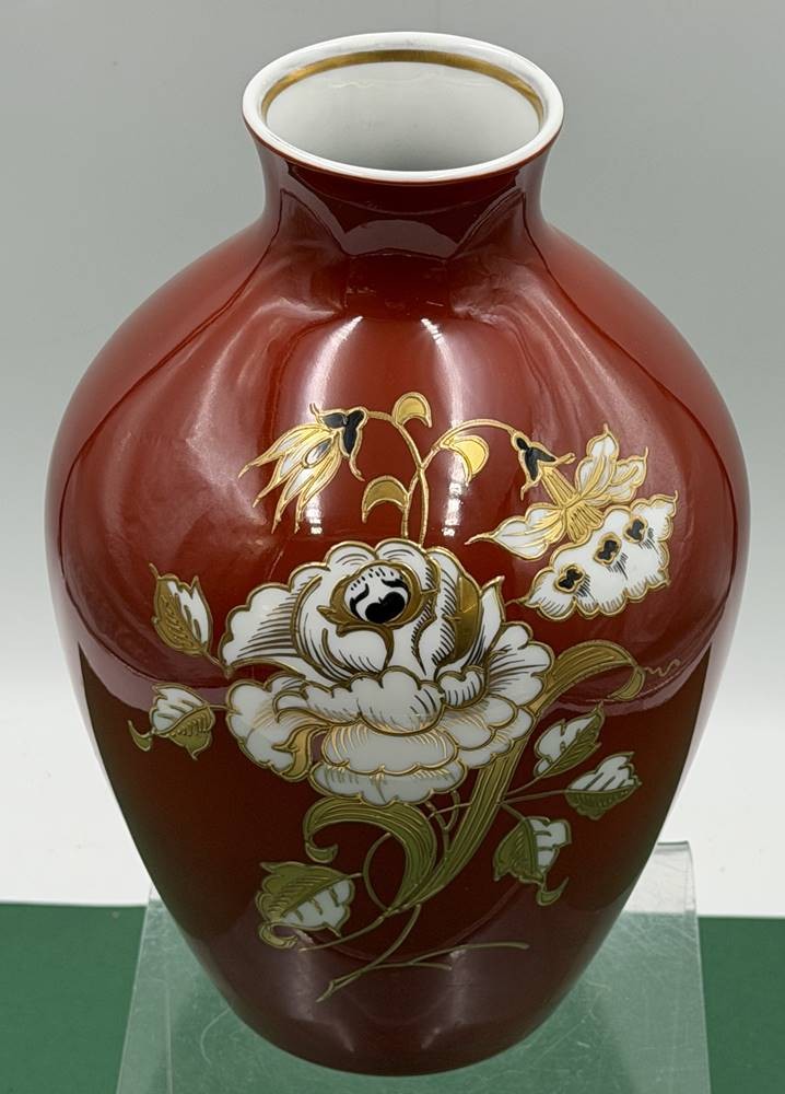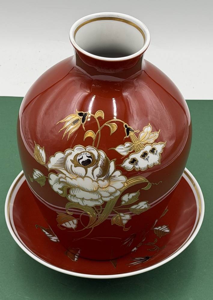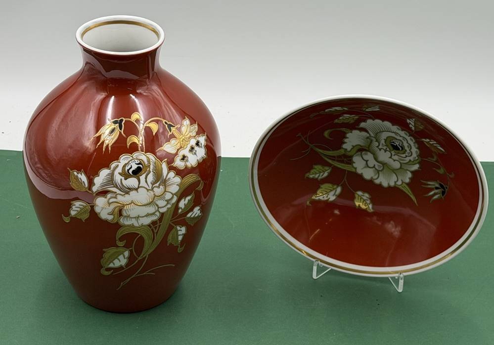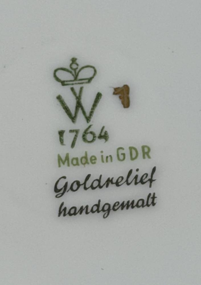 grosse Vase und passende Schale "Wallendorf" Goldrelief handgemalt, H-25 cm, Schale D-21 cm [1]