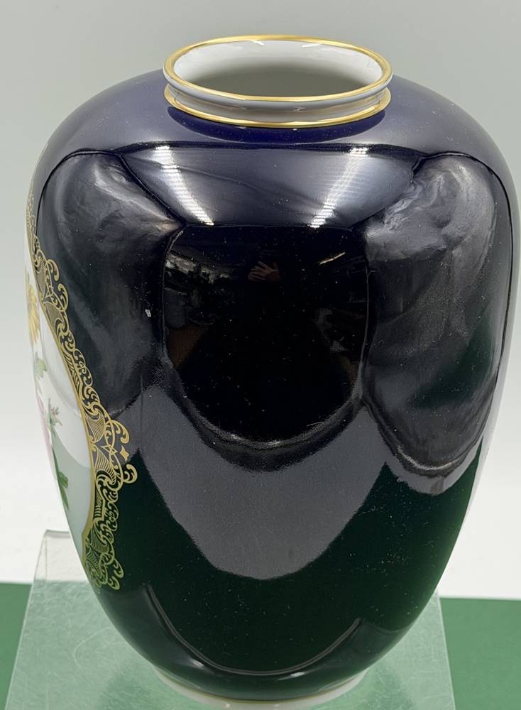 grosse Vase "Weimar" Kobalt mit Gold und Blumen, H-22 cm