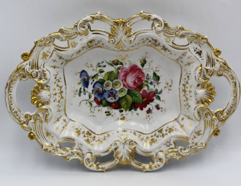 Gründerzeit-Prunkschale "S.P.M." Moabit, Rosen-und Goldstaffage,33x23 cm