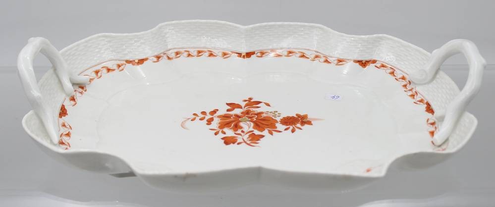Henkeltablett Meissen Altosier , Orangefarbene Blumen . [1]