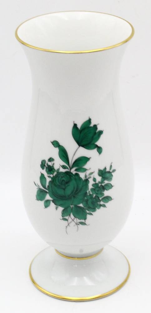 hohe Vase auf Stand "Augarten-Wien", grüne Rose, H-23 cm [1]