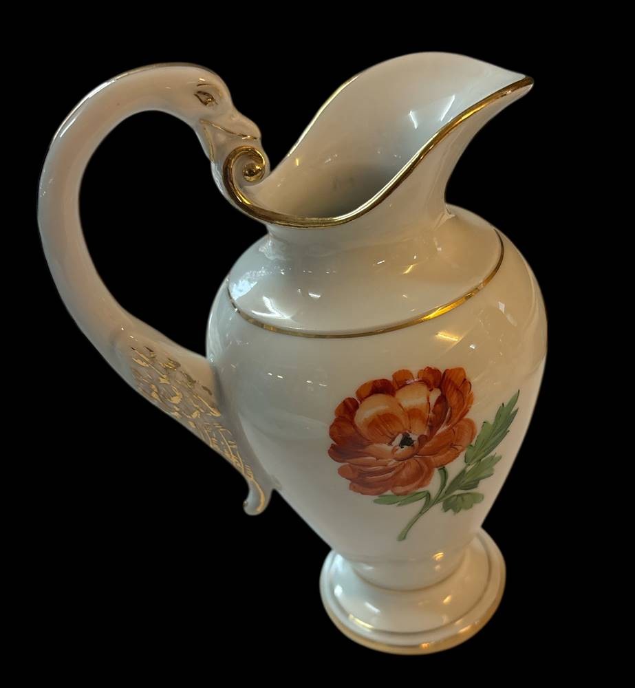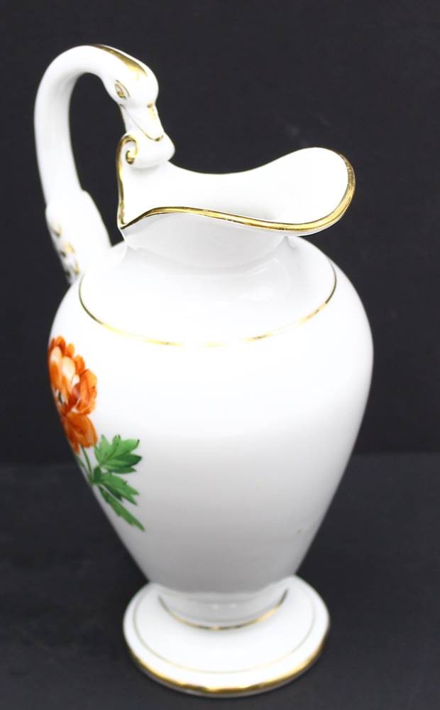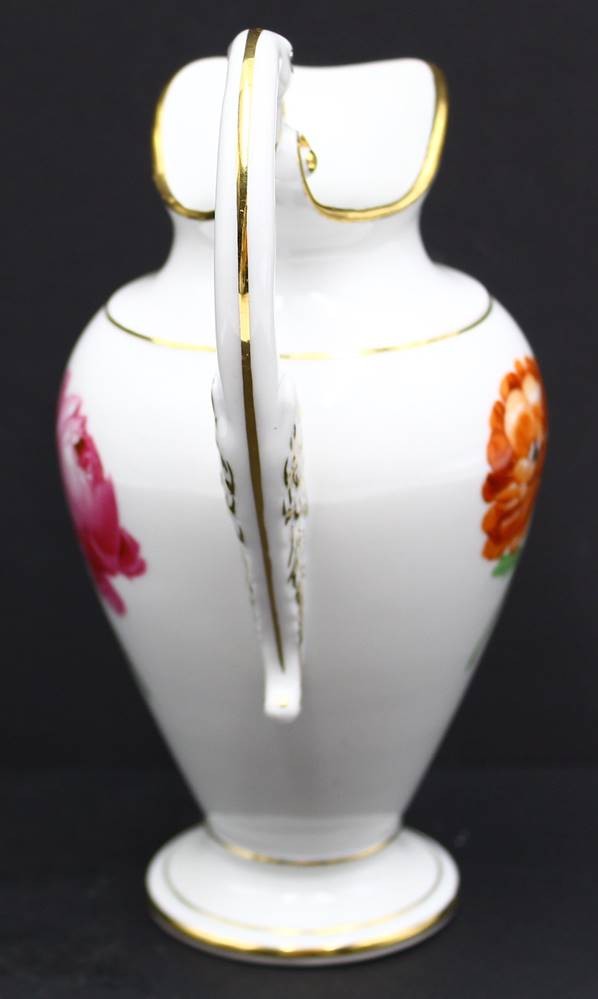 hohes Milchkännchen "Meissen" Blumendekor, lt. Schwertermarke 1774-1814?, Schwanenhals, H-18 cm [1]