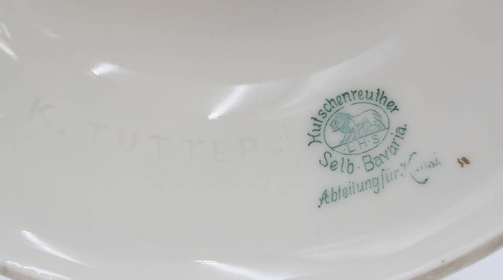 Hutschenreuther Porzellan-Kerzenleuchter, Entw. Tutter, Reliefdekor, ca. H-30cm B-36,5cm