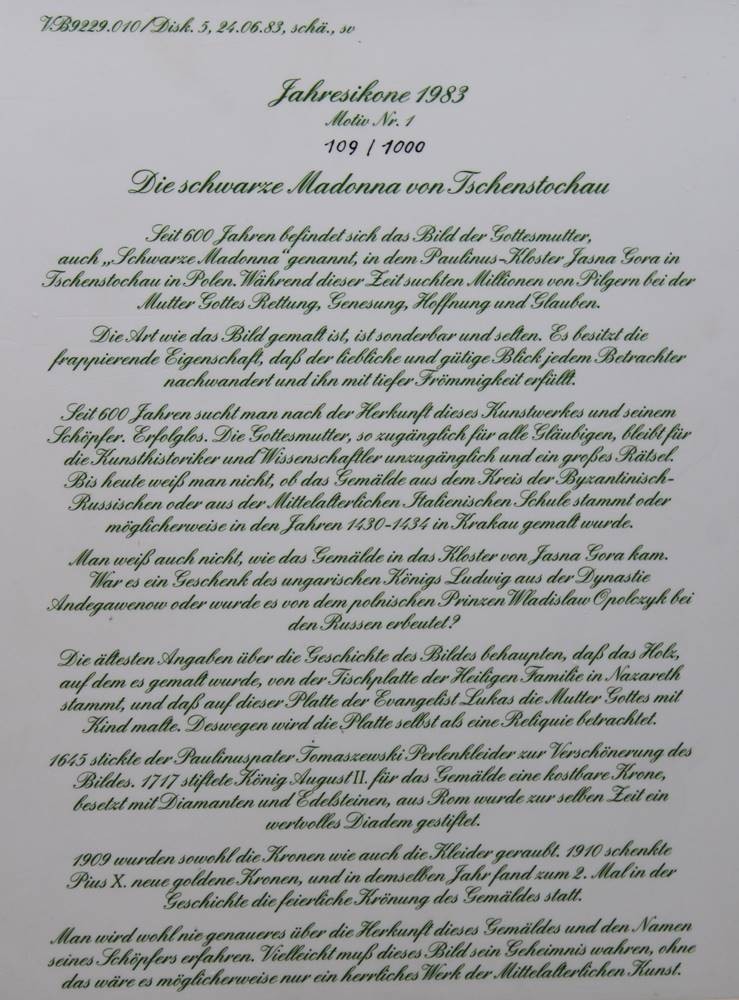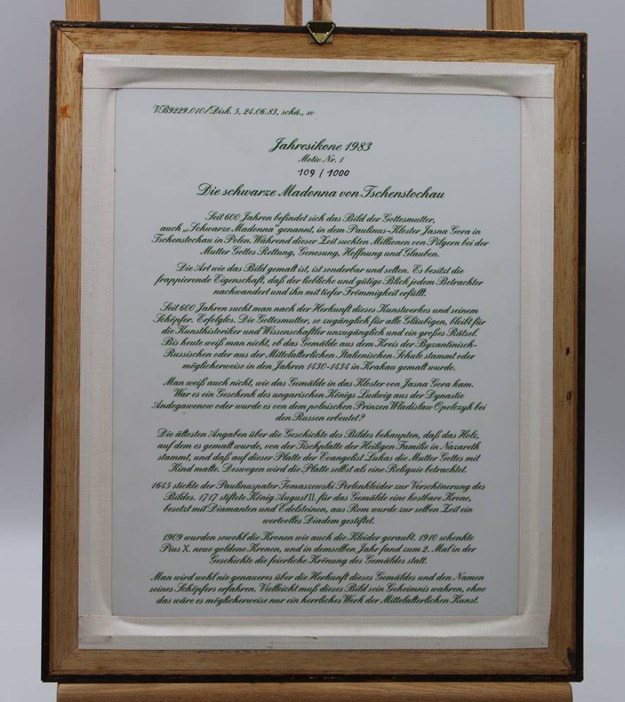 Jahresikone 1983, Motiv. Nr. 1, Schwarze Madonna von Tschenstochau, gerahmt, RG 37 x 30,5cm [1]