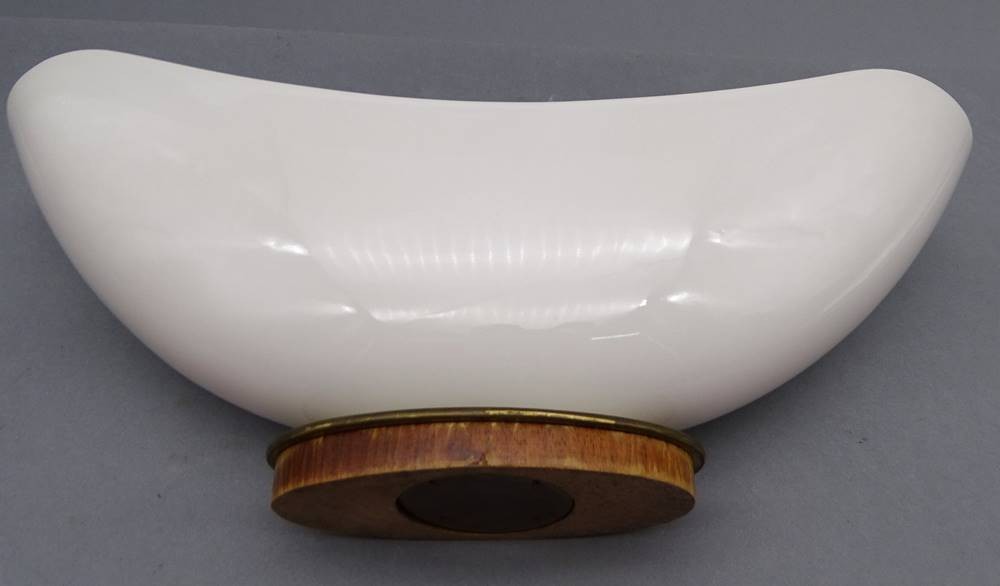 Jardiniere "KPM" Berlin mit Steckeinsatz, Weissporzellan mit Holzstand, dieser mit Gebrauchsspuren, H-13,5 cm, 33x9 cm [1]