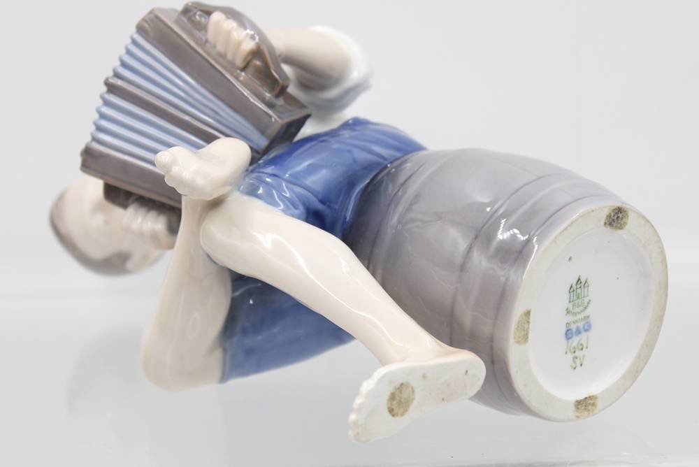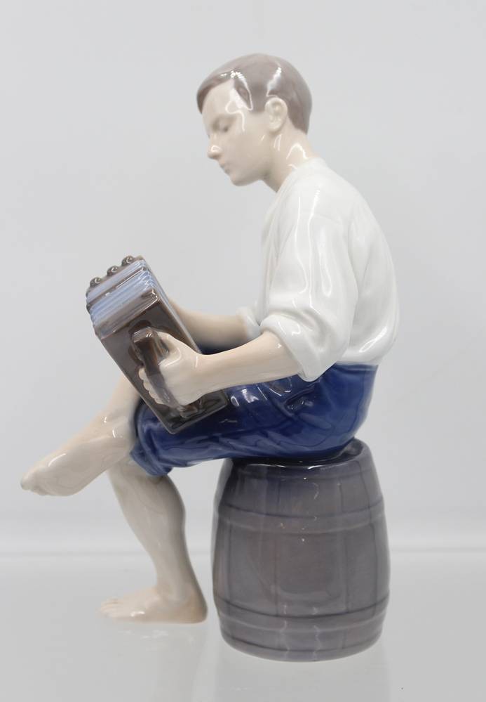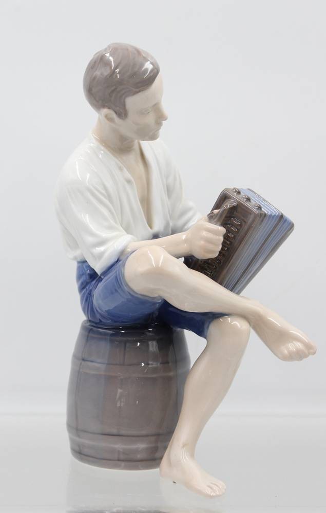 Jüngling mit Ziehharmonika, Bing & Gröndahl, Entw. Ingeborg Plockross Irminger, Modellnr. 1661, polychrom bemalt in Unterglasurfarben, H-22,5cm [1]