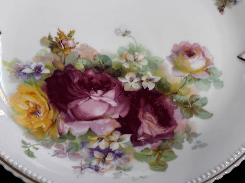 Jugendstil-Kuchenteller mit Rosendekor "Königszelt" Silesia, D-25 cm [1]
