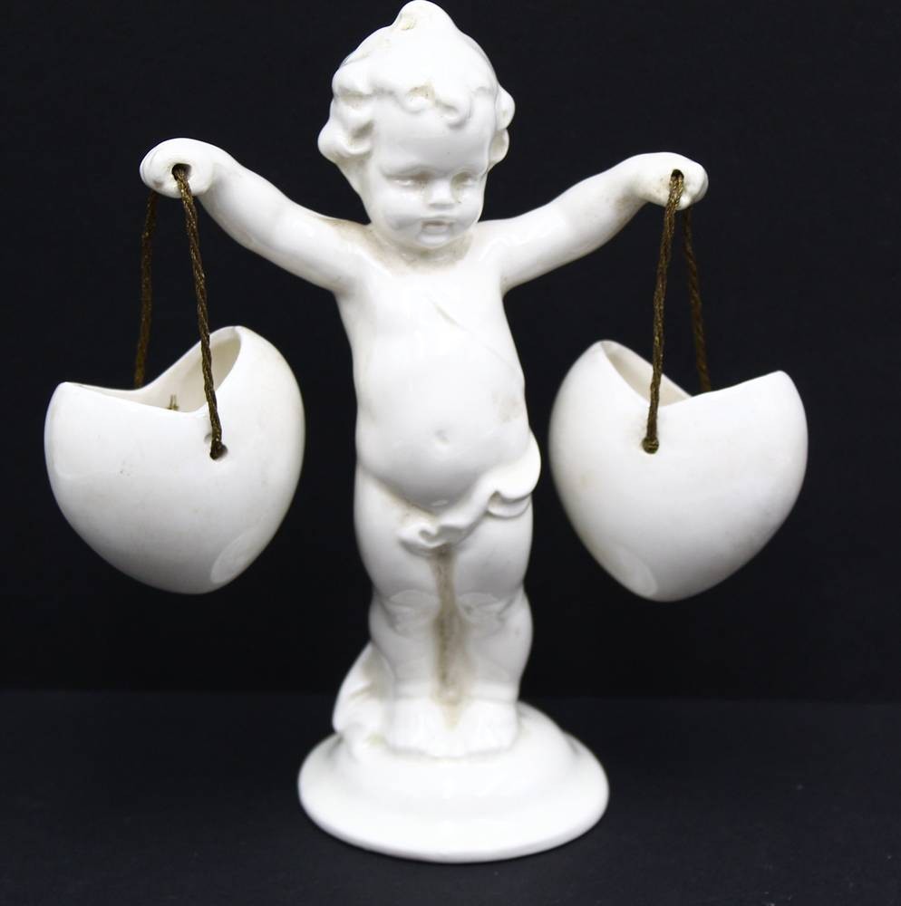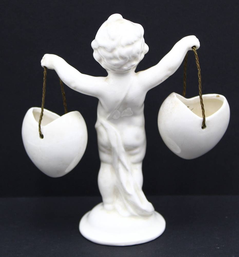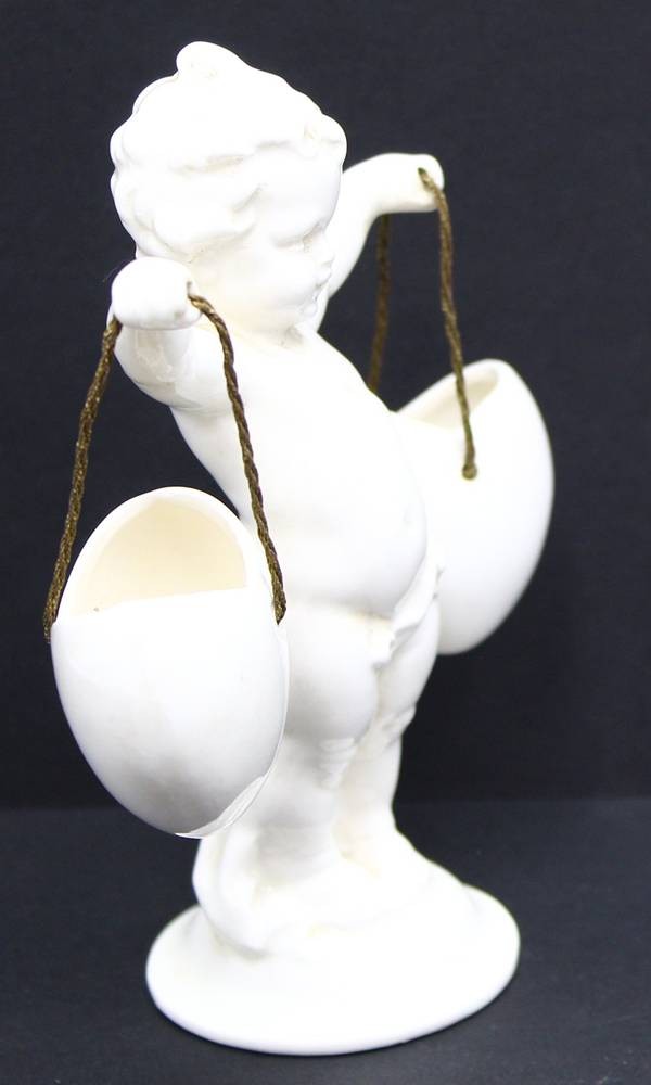 Junge mit 2 Blumenampel, weiss "Katzhütte" H-14 cm [1]