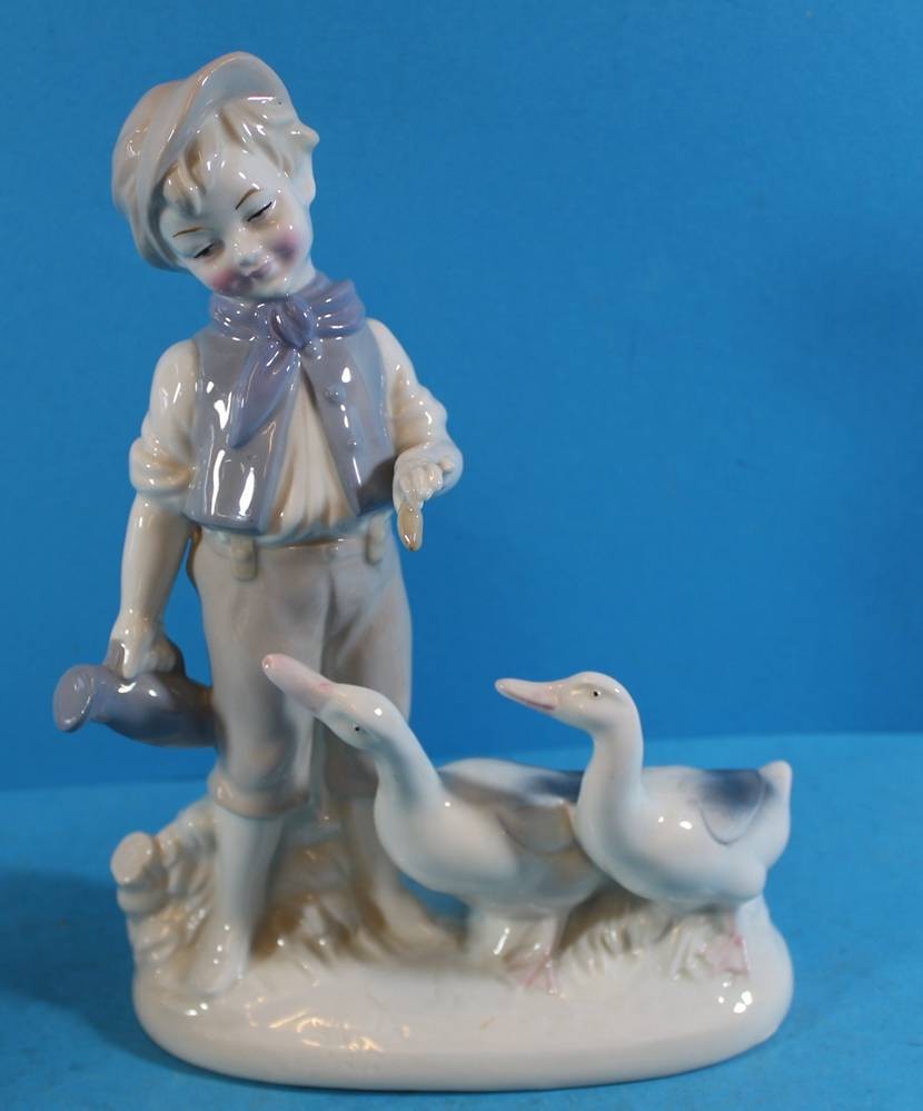 Junge mit 2 Enten, bemalt, Thüringen, H-21 cm, B-16 cm [1]