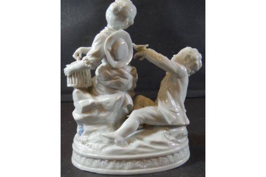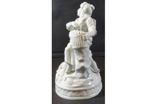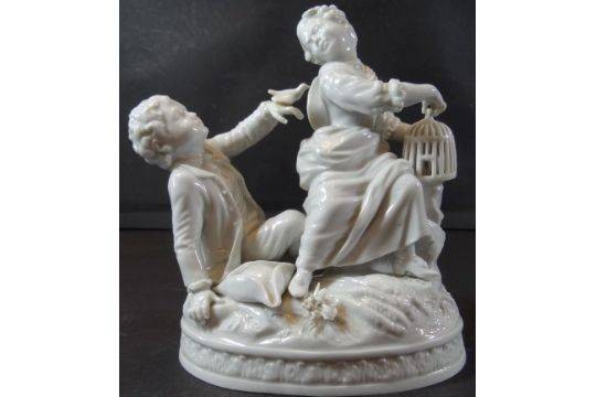 junges Paar mit Vogelkäfig "Dresden" Potschappel, weiss, H-15 cm, B-15 cm [1]