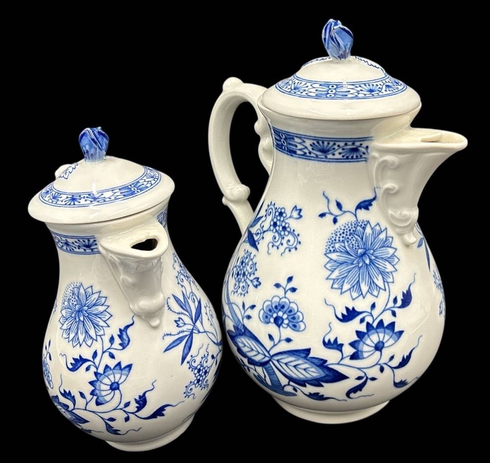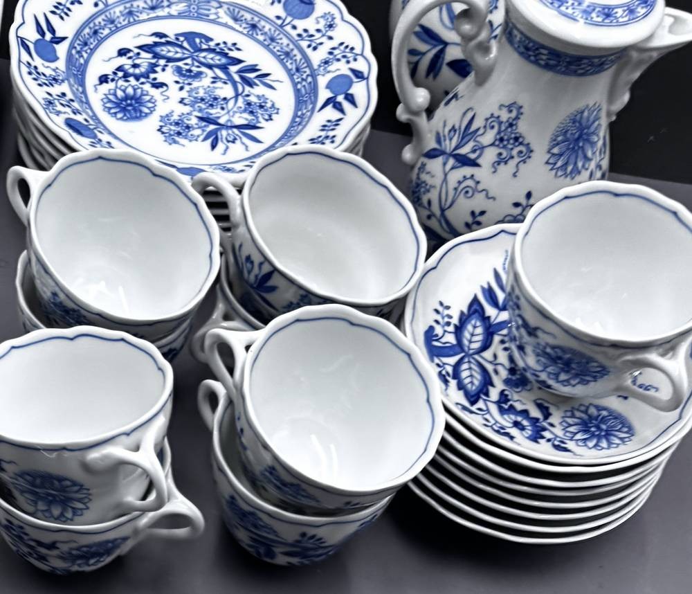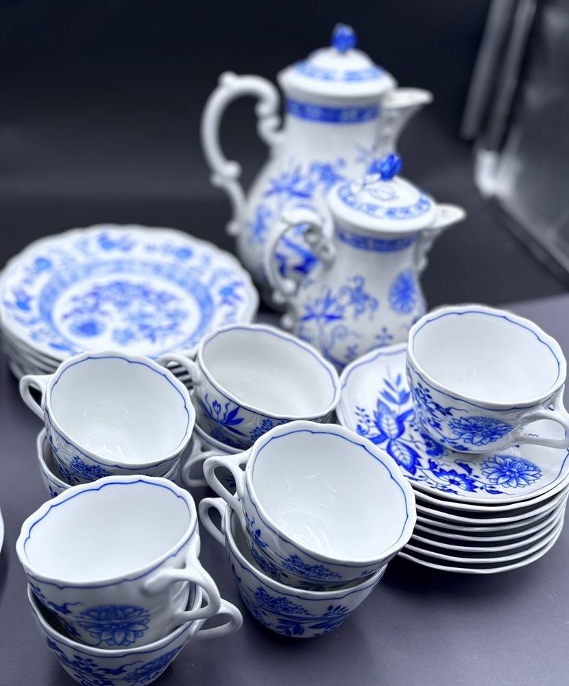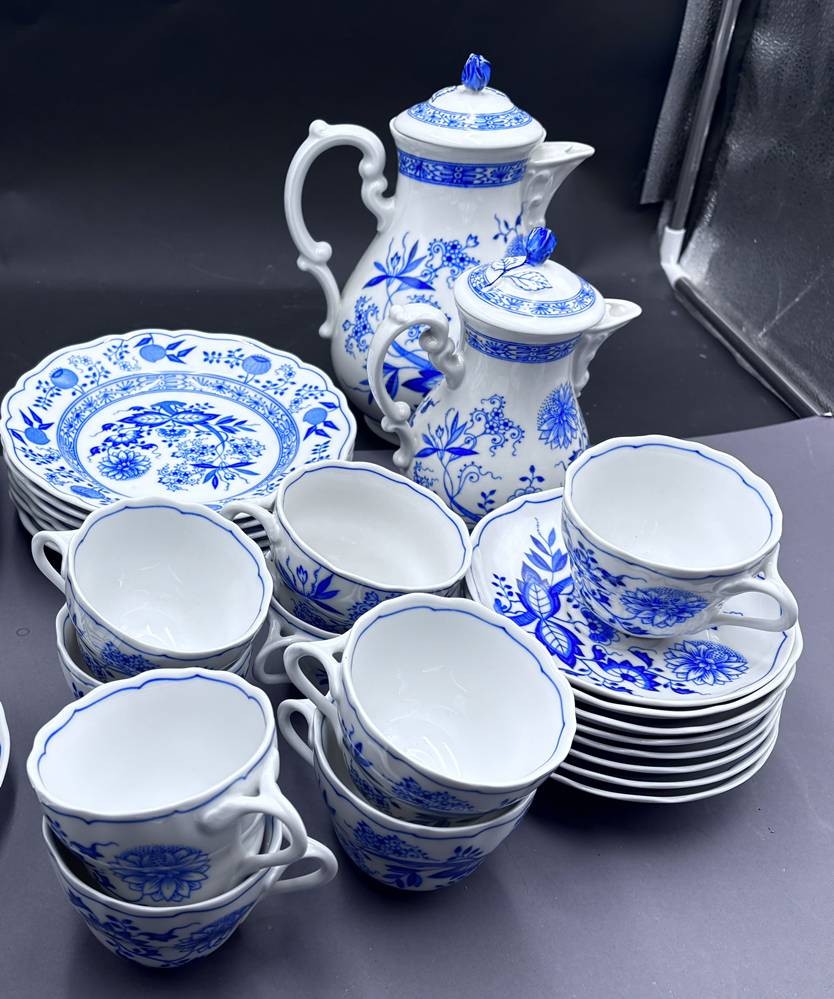 Kaffee-Teeservice Teile "Hutschenreuther" Zwiebelmuster , gr. und kleine Kanne, 9 Tassen mit U.T., 6 Kuchenteller, 26 Teile [1]