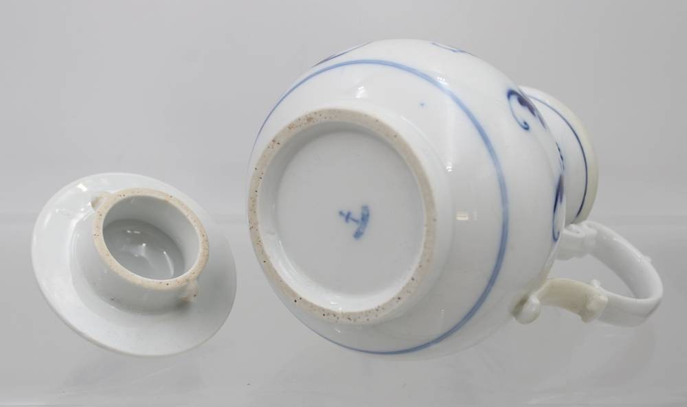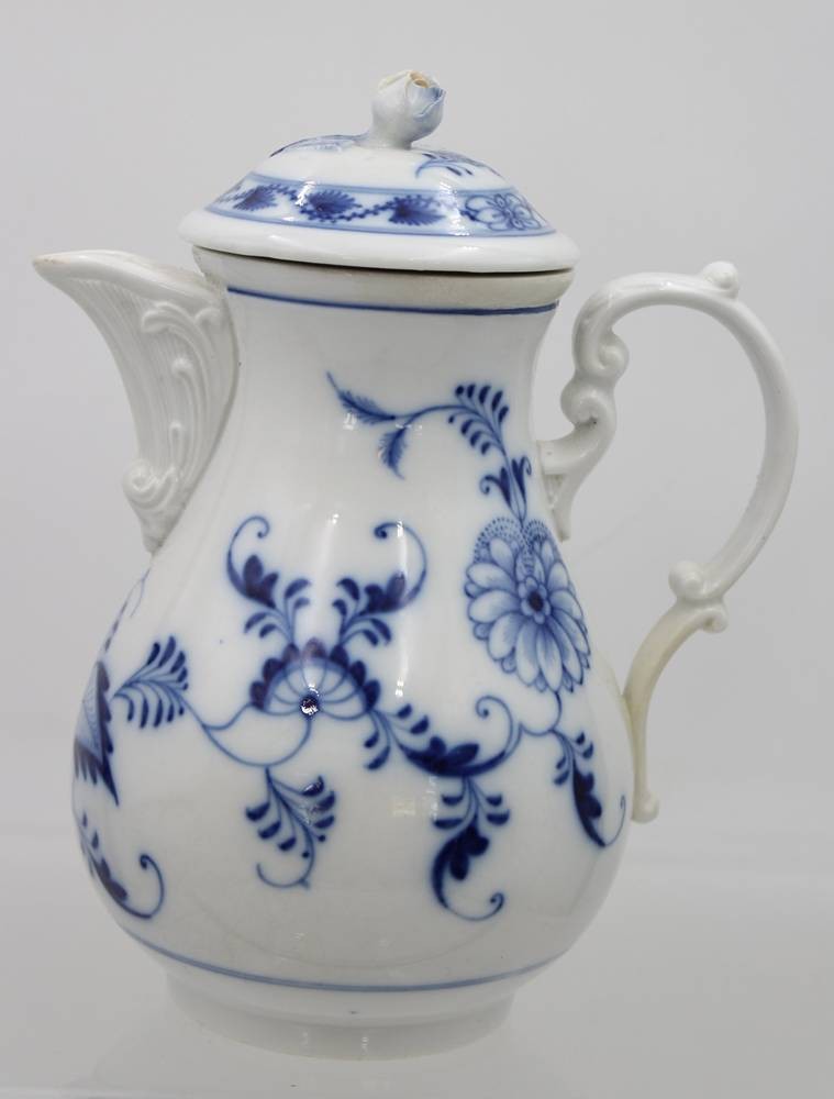 Kaffeekanne, Stadt Meissen, Zwiebelmuster, fachm. restauriert, Deckelblüte bestossen, ca. H-22,5cm [1]