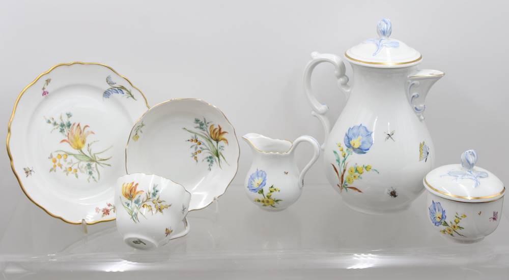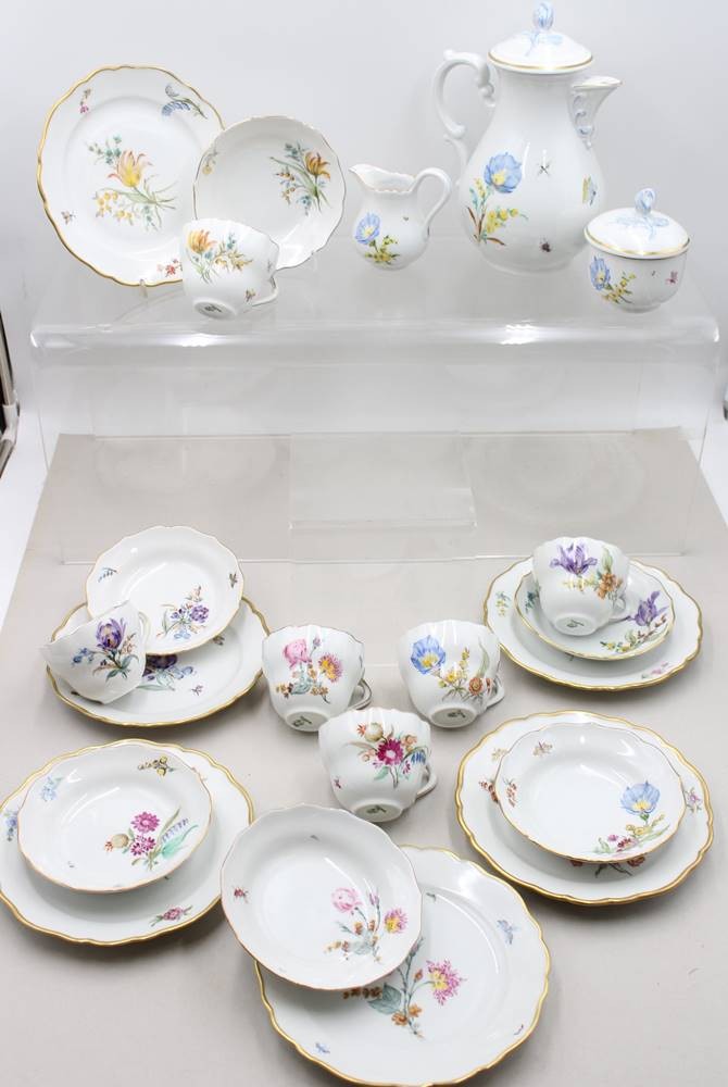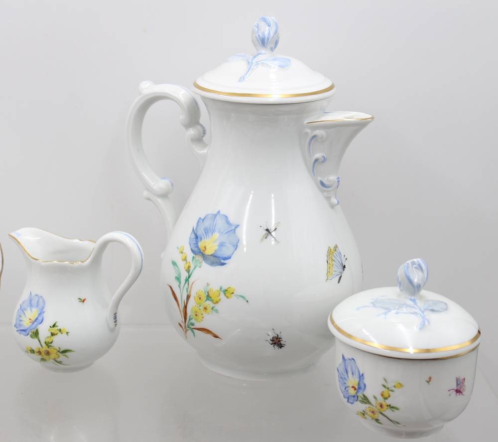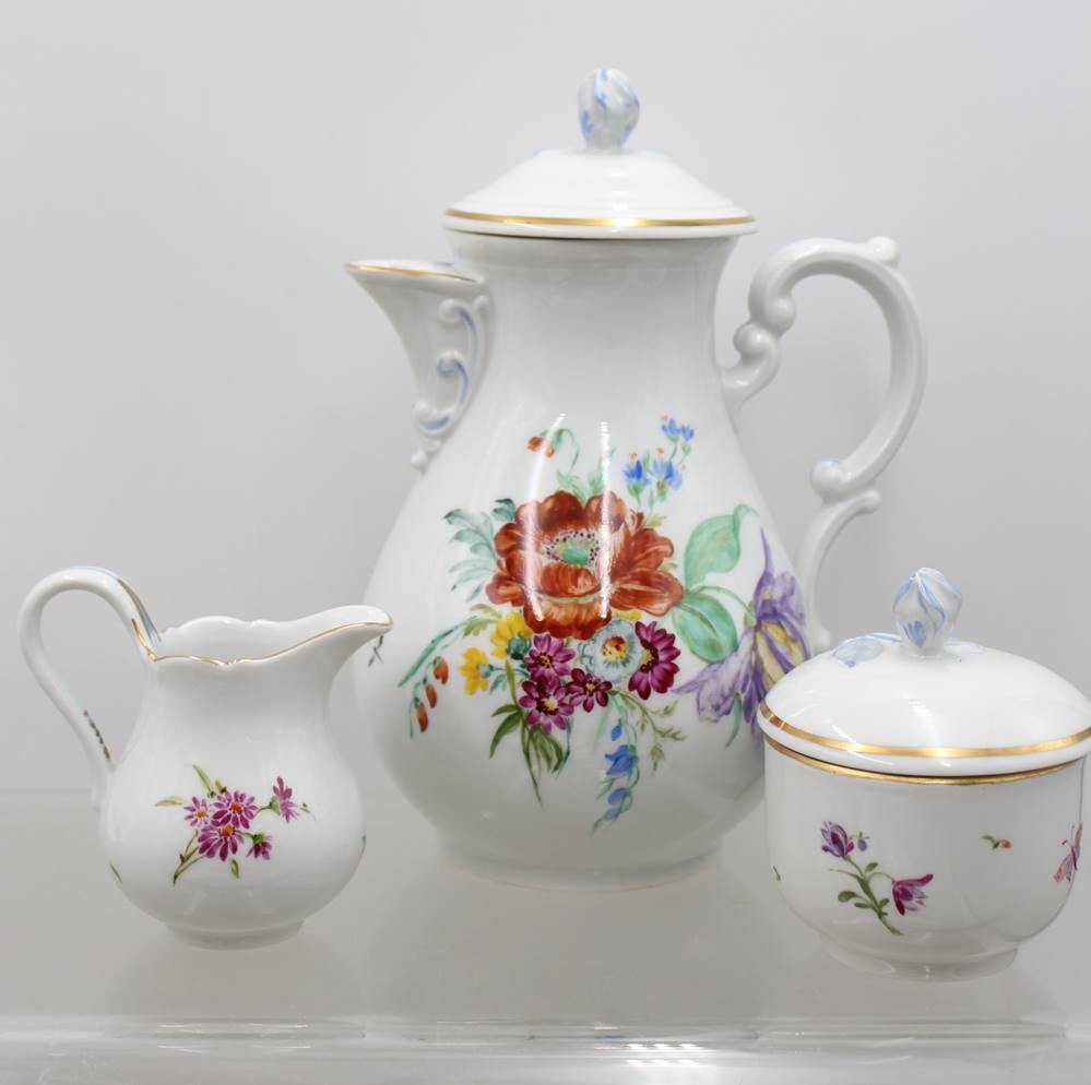 Kaffeeservice für 6 Personen, Hutschenreuther, Blumenbemalung, Kanne H-24cm Tassen H-7cm [1]