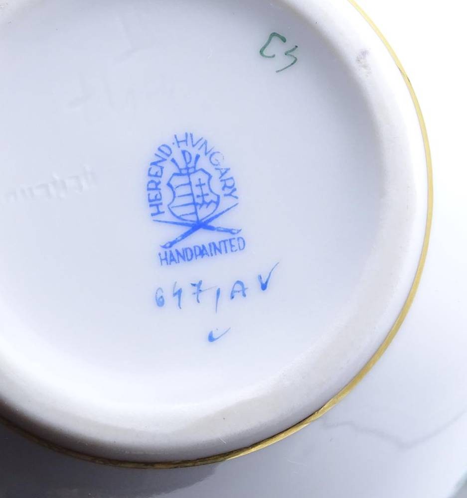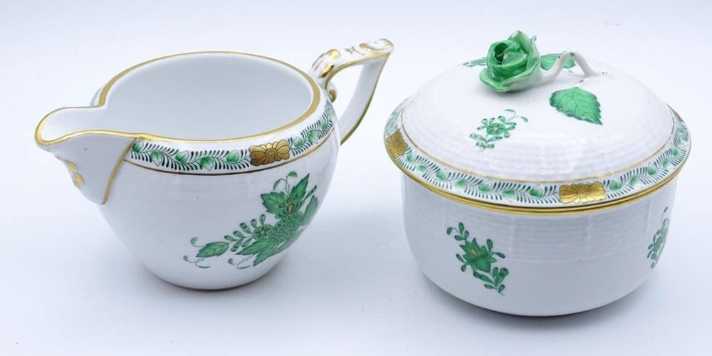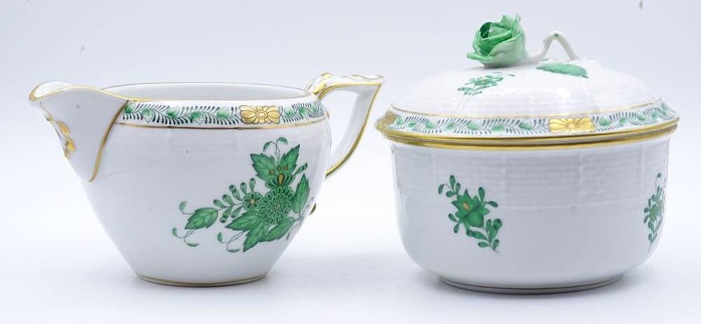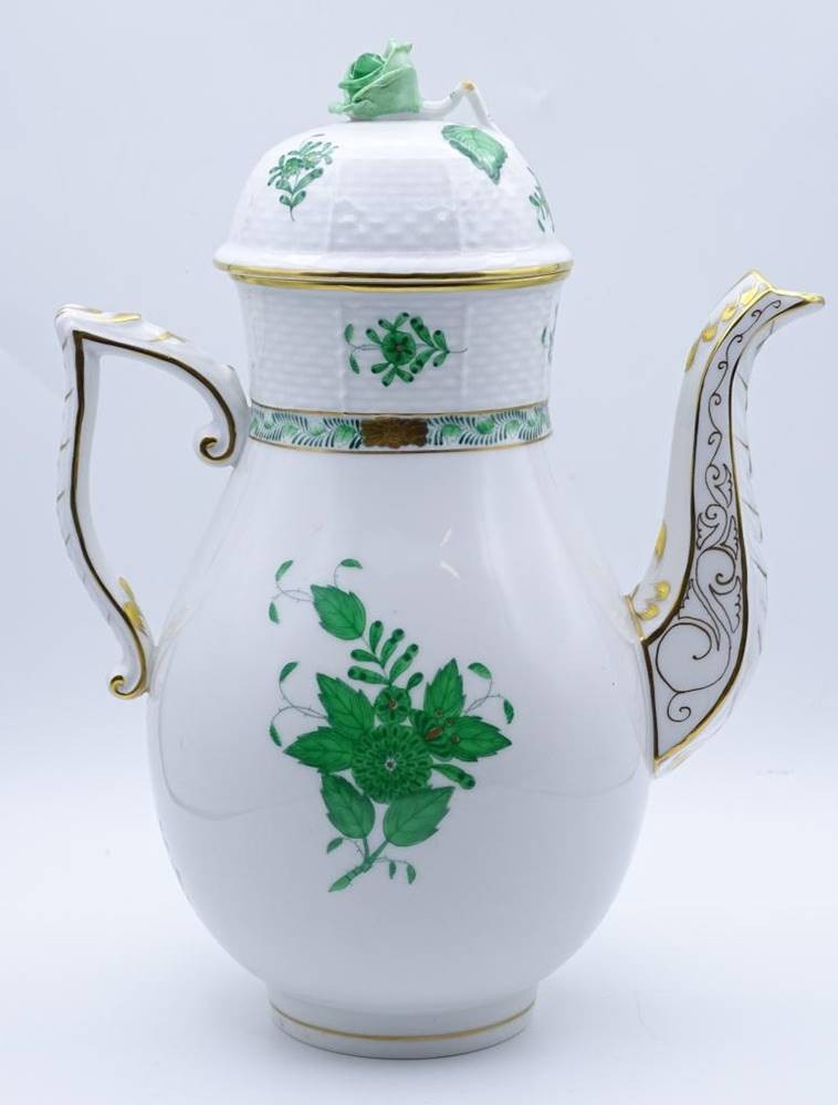 Kaffeeservice "Herend" Apponyi grün, für 6 Personen, 21 Teile, H-Kanne 24 cm, Blüte auf Zuckerdose min. bestossen [1]