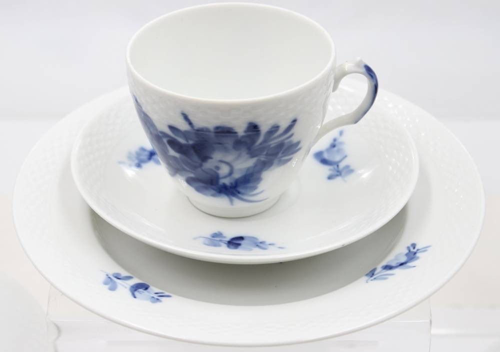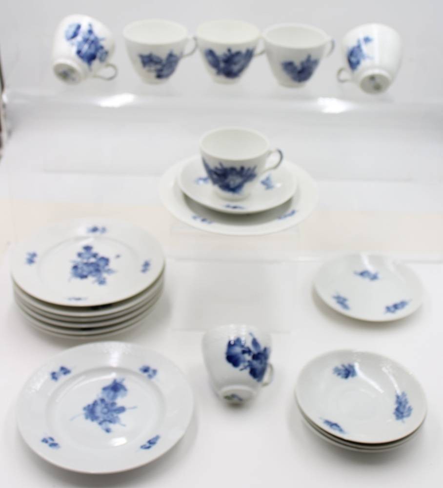 Kaffeeservice Teile "Royal Copenhagen" blaue Blume, 7 Tassen, 5 U.T. (davon 3x mit Chip) 7 Kuchenteller (19 Teile) [1]