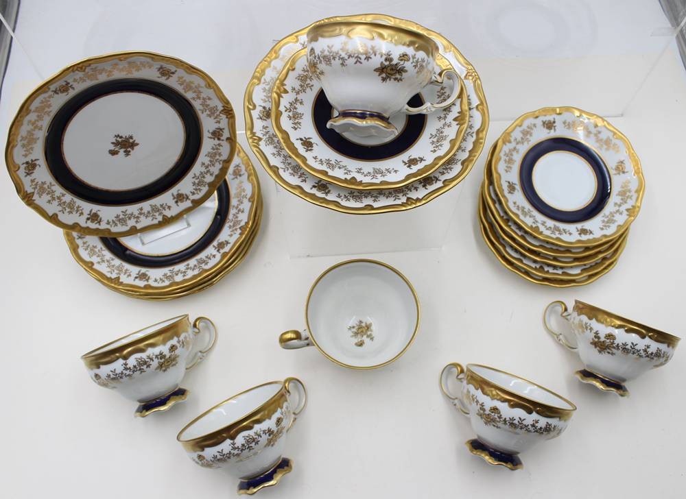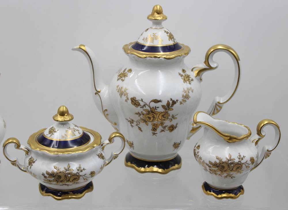 Kaffeeservice, Weimar, Kobalt und Blumen, für 6 Personen, anbei Vase und Leuchter, Kanne ca. H-24cm Tassen H-6,5cm [1]