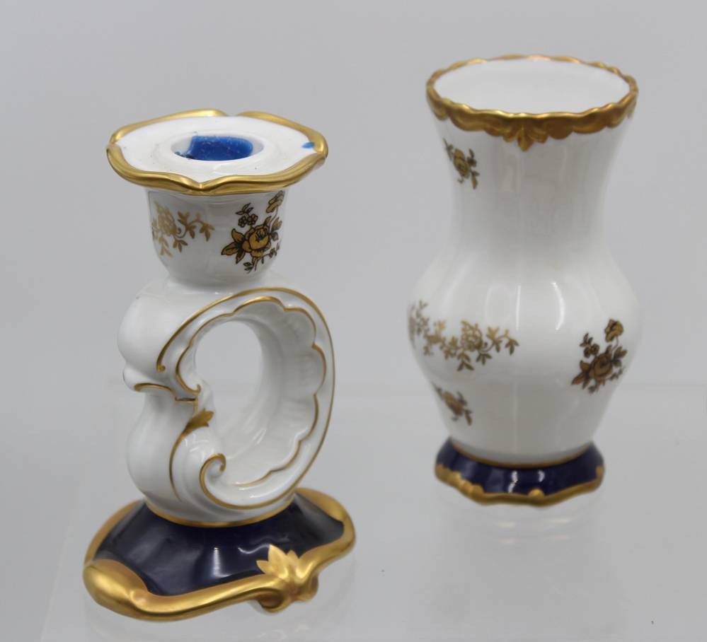 Kaffeeservice, Weimar, Kobalt und Blumen, für 6 Personen, anbei Vase und Leuchter, Kanne ca. H-24cm Tassen H-6,5cm