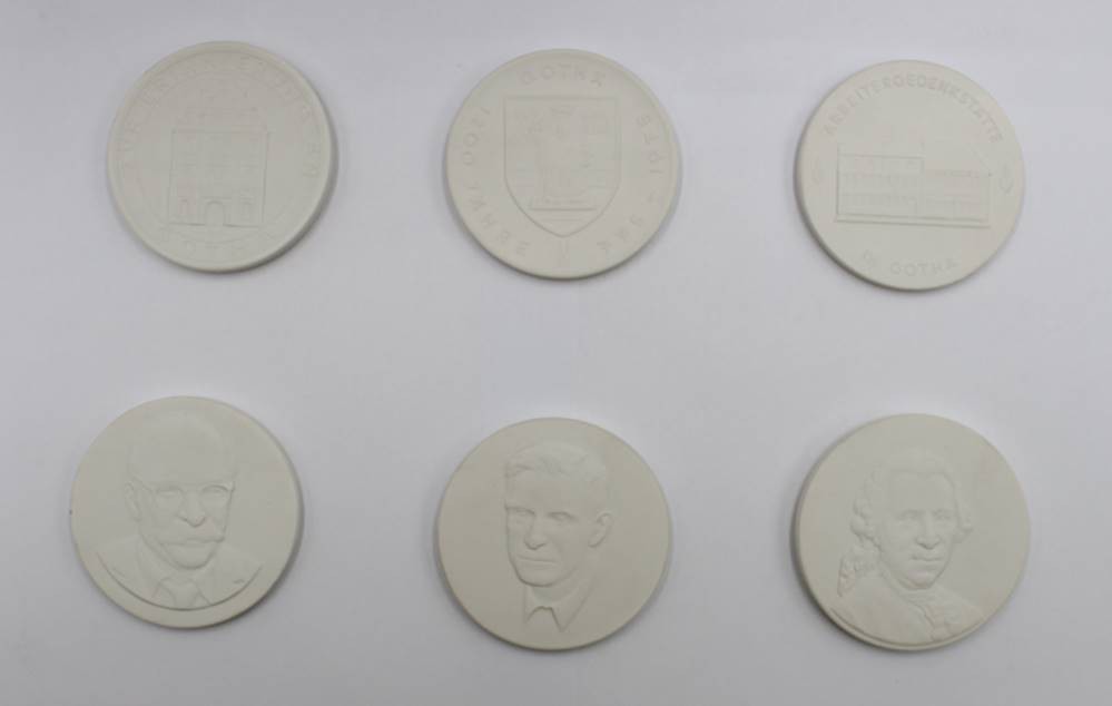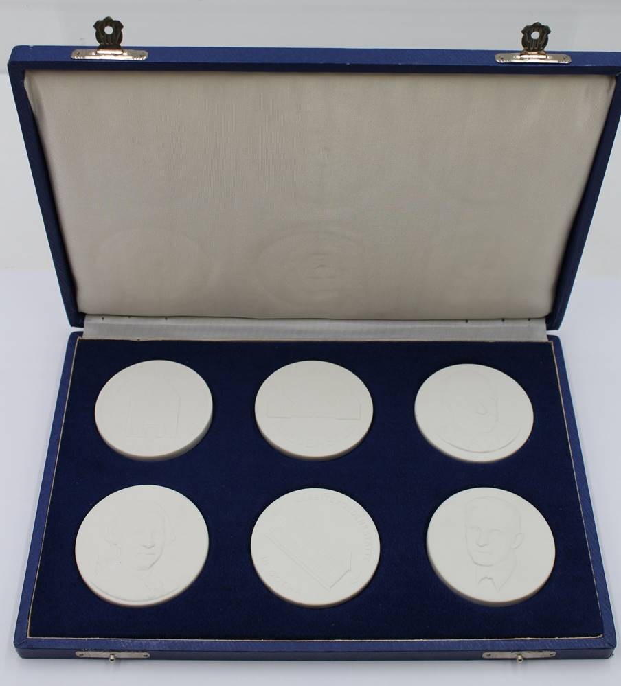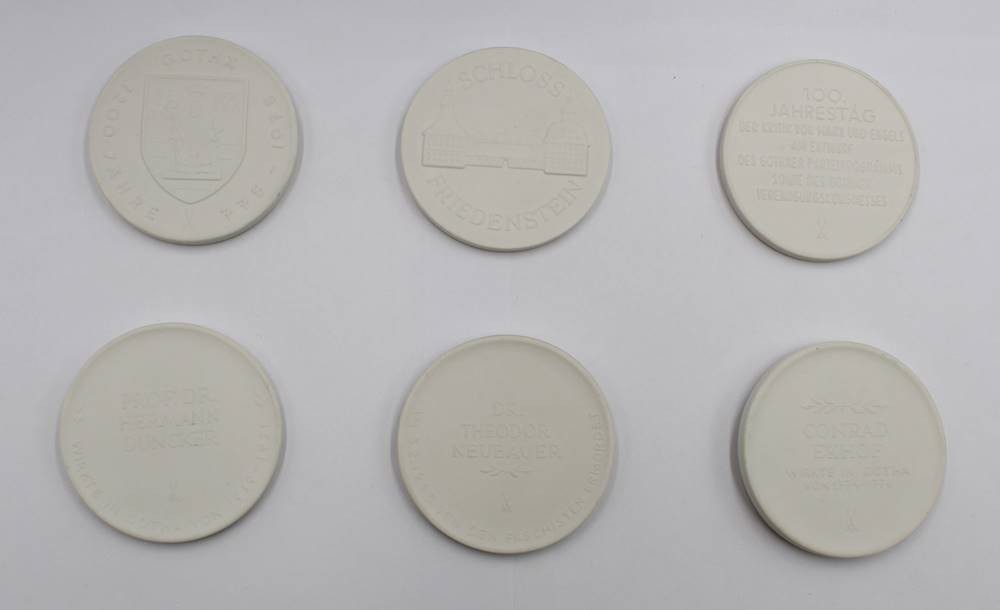 Kasten mit 6 Meissen- Erinnerungs-Plaketten,weiss, D-6 cm [1]