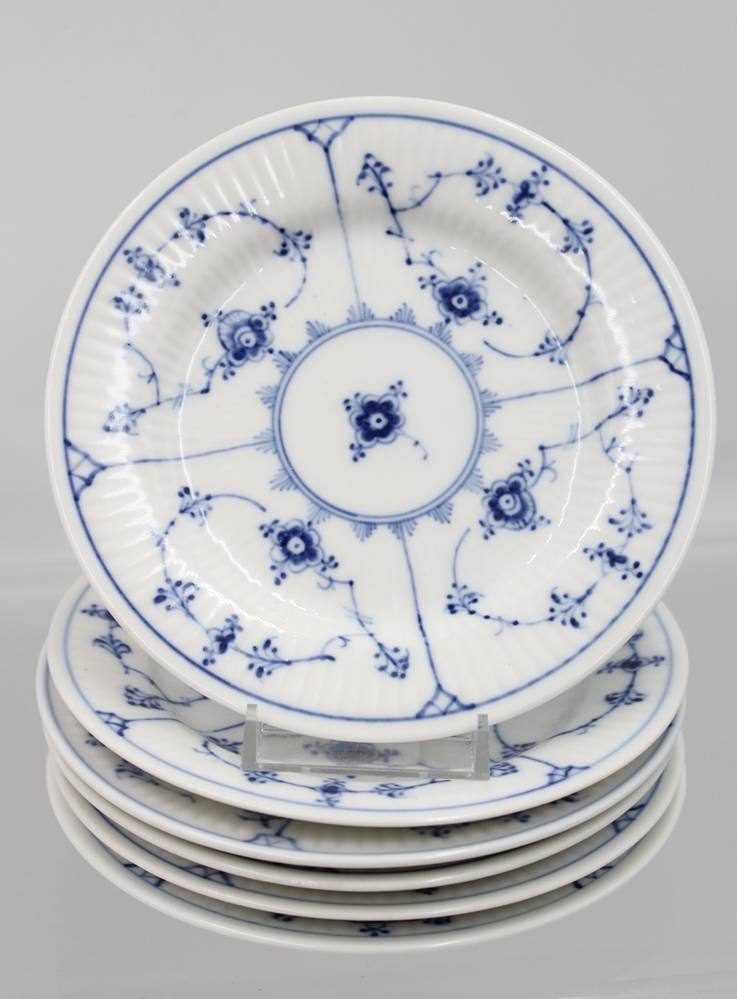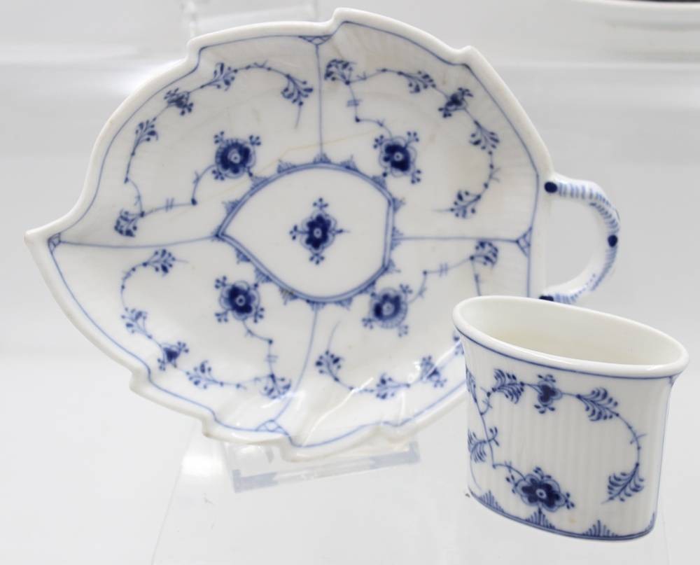 kl. Konvolut Royal Copenhagen, Musselmalet Glat, eckige Schale, Zahnstocherbehälter, Blattschale (altrissig), 6x kl. Teller (D-14cm)