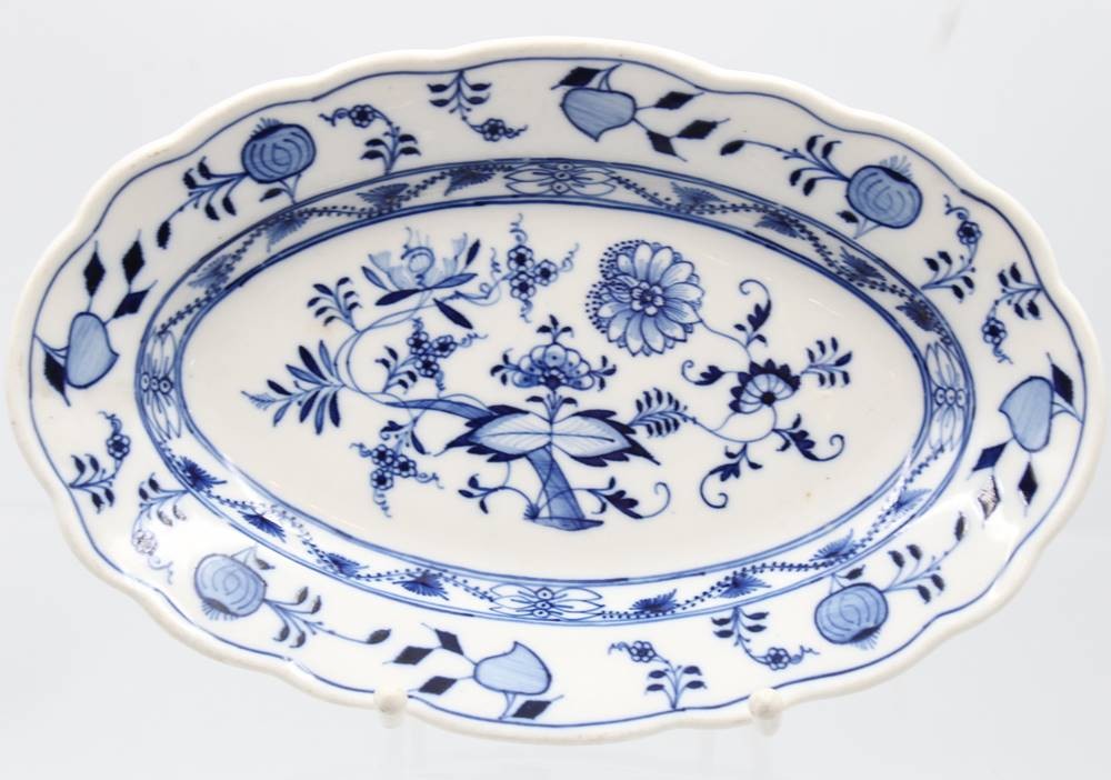 kl. ovale Platte, Stadt Meissen, Zwiebelmuster, H-3,5cm B-27cm [1]