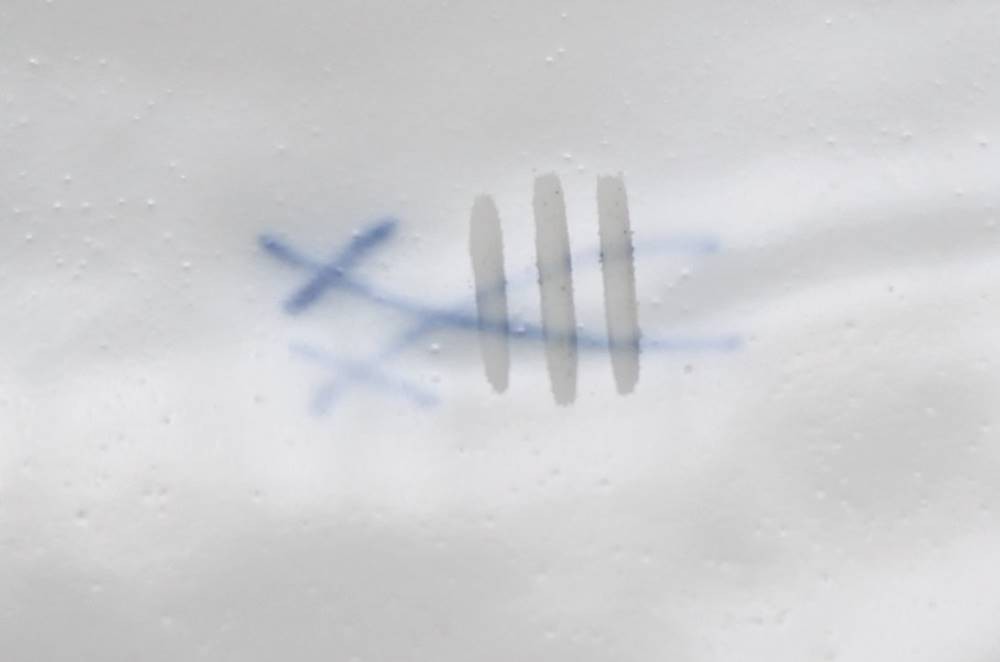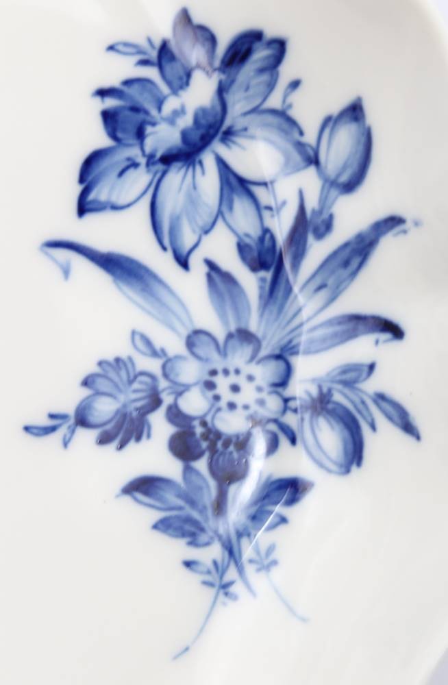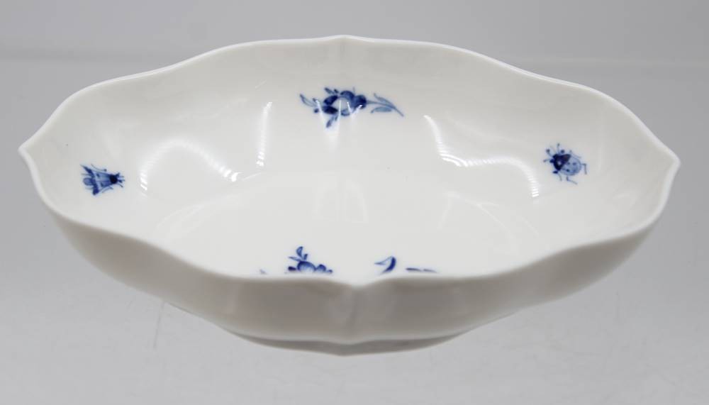 kl. ovale Schale, Meissen Schwertermarke, blaue Blume, Schleifstriche, ca. H-3cm B-15,5cm [1]