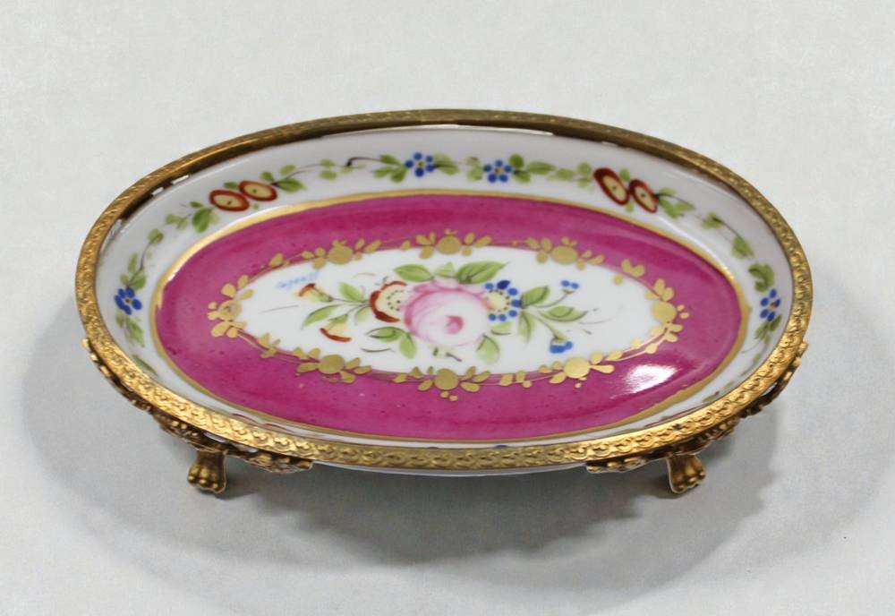 kl. ovale Schale, Paris, Blumenbemalung und Metallmontur, ca. H-3,2cm B-12,5cm [1]