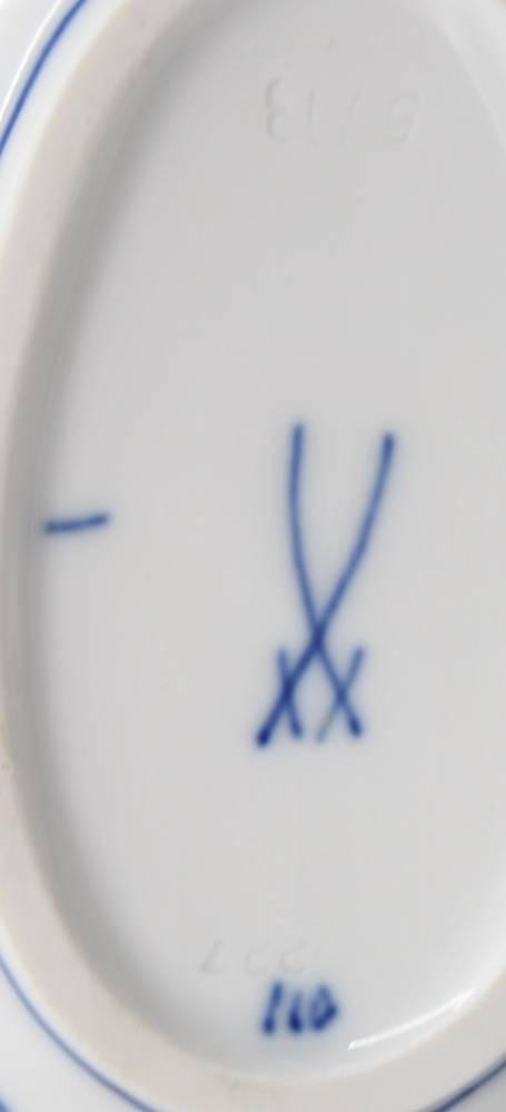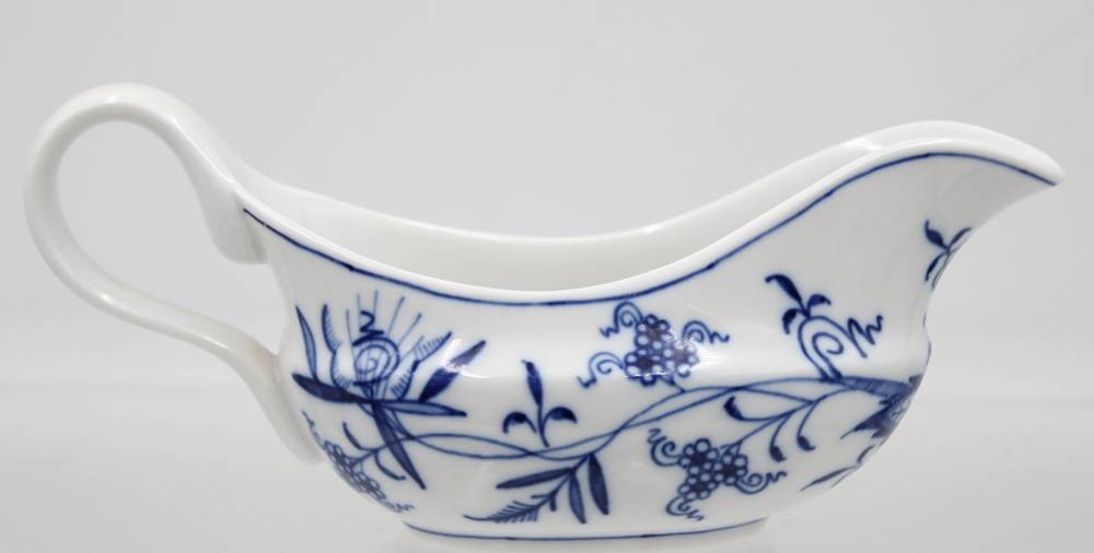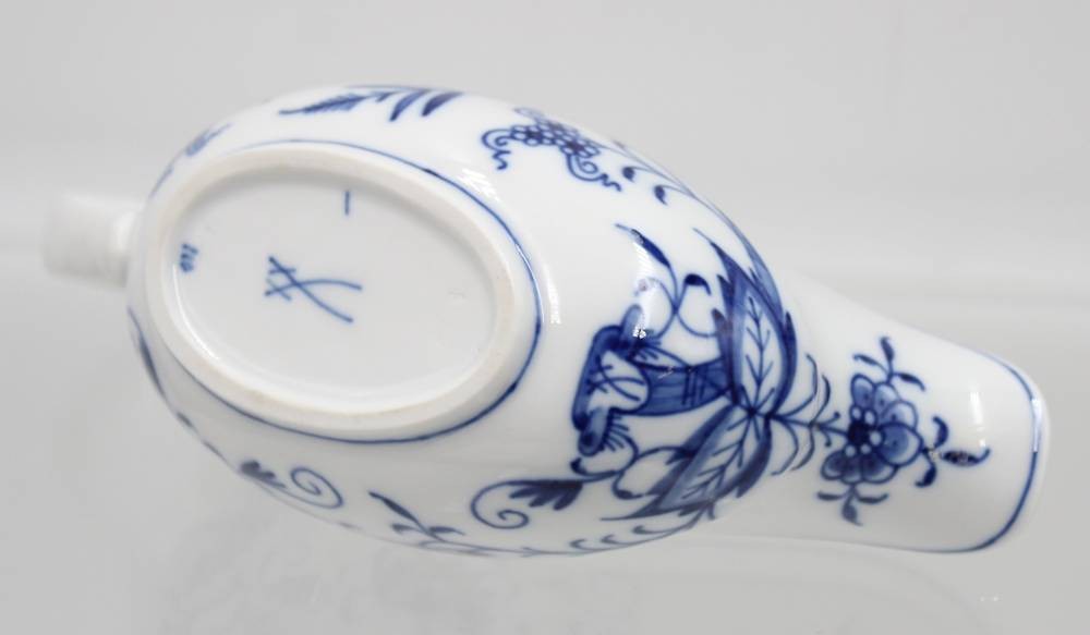 kl. Sauciere, Meissen, Zwiebelmuster, 1. Wahl, H-8,2cm B-19cm [1]