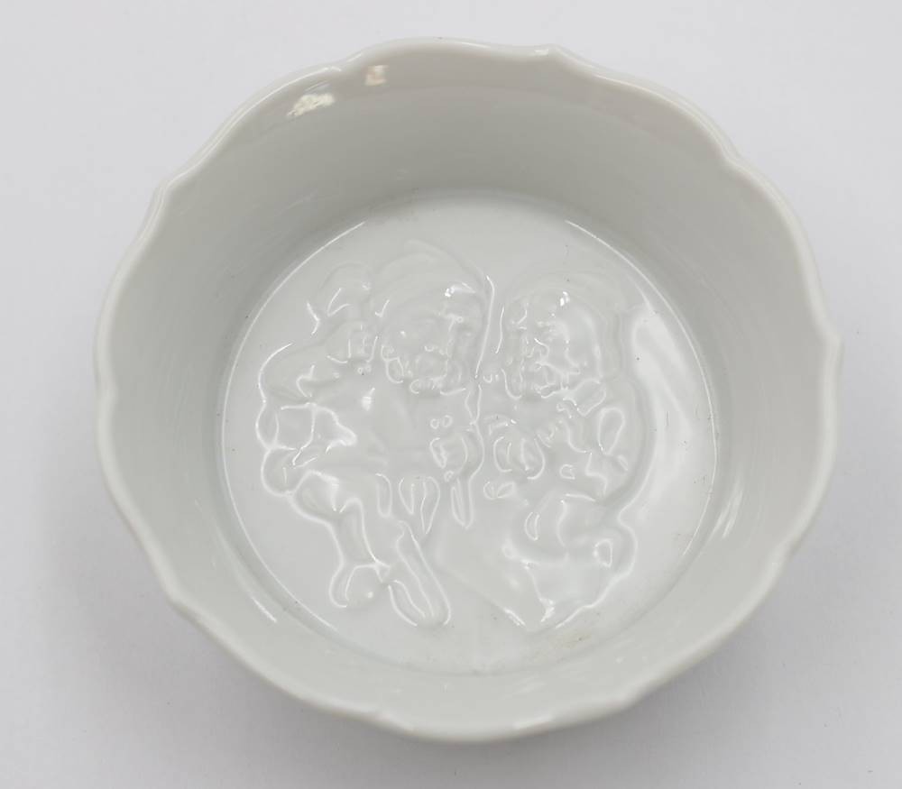 kl. Schale, Meissen weiss, Zwergenrelief, 1. Wahl, ca. H-3cm D-8cm [1]