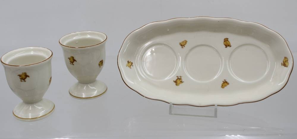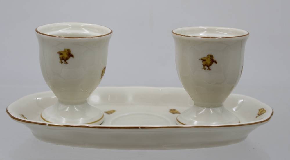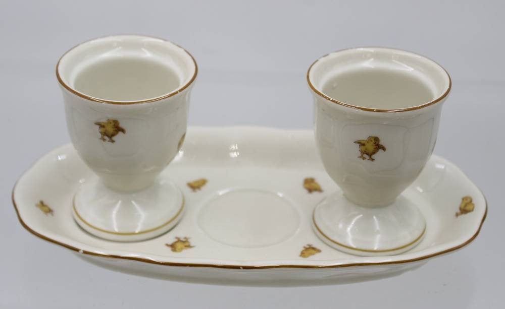 kl. Tablett mit 2 Eierbechern, Königszelt, Osterdekor, Streuer fehlt, ca. H-6,5cm B-18cm [1]